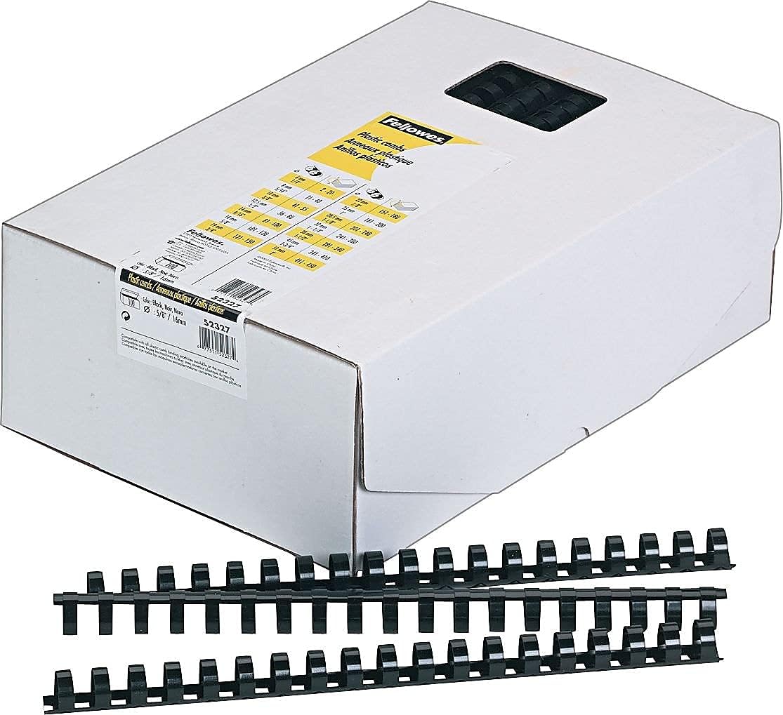 Fellowes "Fellowes 52327, Plastic Combs - Round Back, 100 pack, Black, "5/8"",120 sheet capacity"