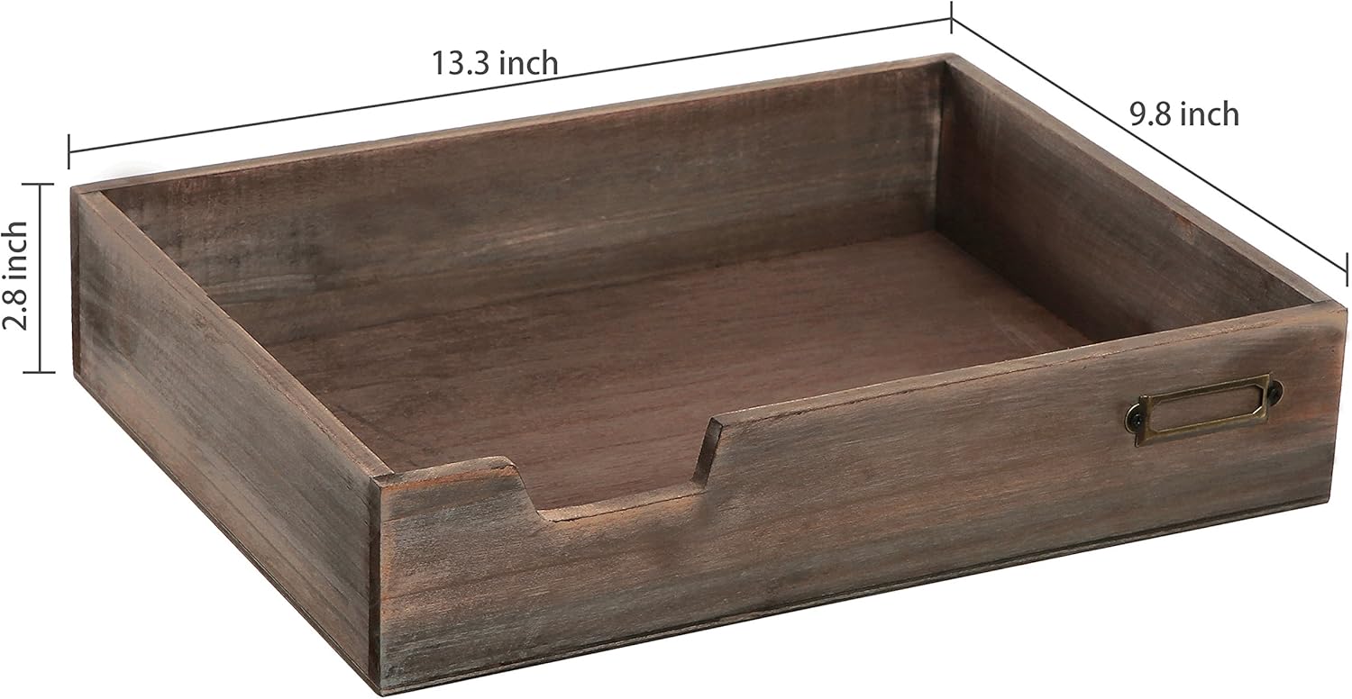 MyGift® Distressed Brown Vintage Wood Paper Tray, Office Desktop Document, File Folder, Magazine Holder Tray