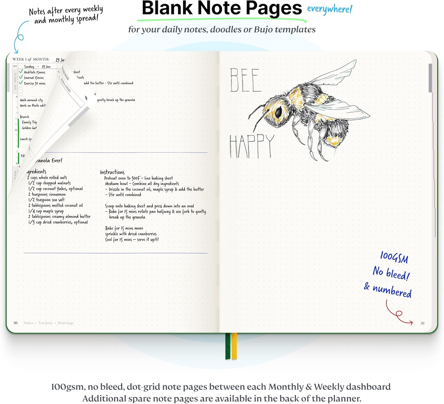 - Planner + Notebook All in 1: Annual Calendar, Notes Index, Monthly & Weekly to do list planner dashboards, 93 numbered dotted note pages for expanded task lists, notes, or sketches. All-in-one business planner, notebook and life organizer.