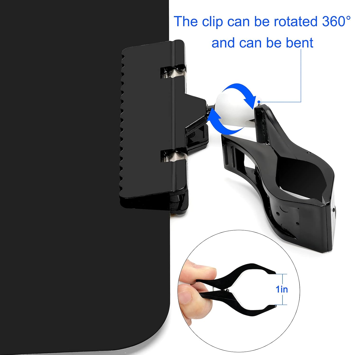 - Double Clip Design: With super clamp mouth, rotatable clip allows you to adjust it at optimal position, easy to clamp, to rack or shelf. Suitable for cylindrical objects, plates, square tubes, partitions, round tubes, etc. Objects with a diameter or thickness not exceeding 2.5 cm