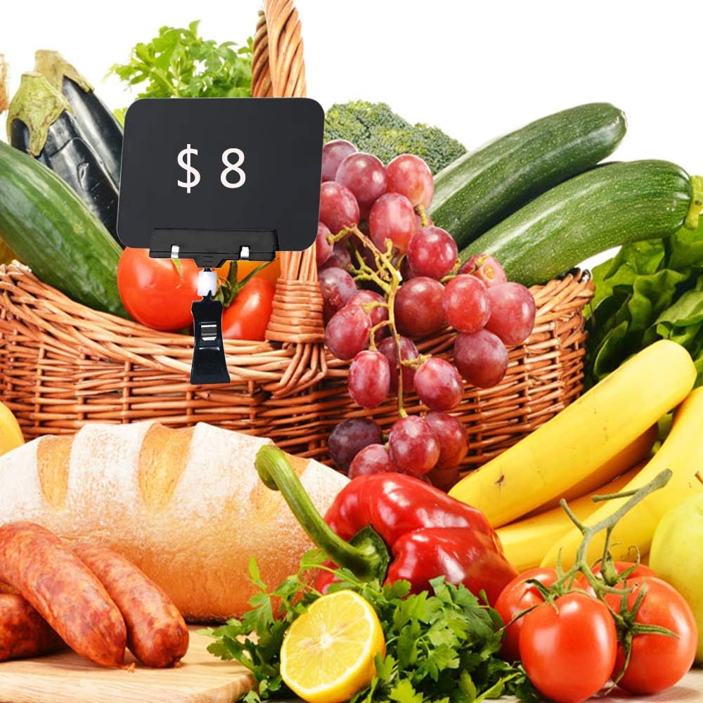 - Erasable Price Tags: Easy to write with any kind of liquid chalk markers and easy to wipe away with sponge (can't write in chalk). Base clip for holder, transverse clip with tag for sign. With the pop-up open, insert the rod through the nearest hole in the clevis, which was joined by a ball knuckle, and then write down what you want on the other side of the chalkboard. What's more, you can erase rewritable sign board for reuse