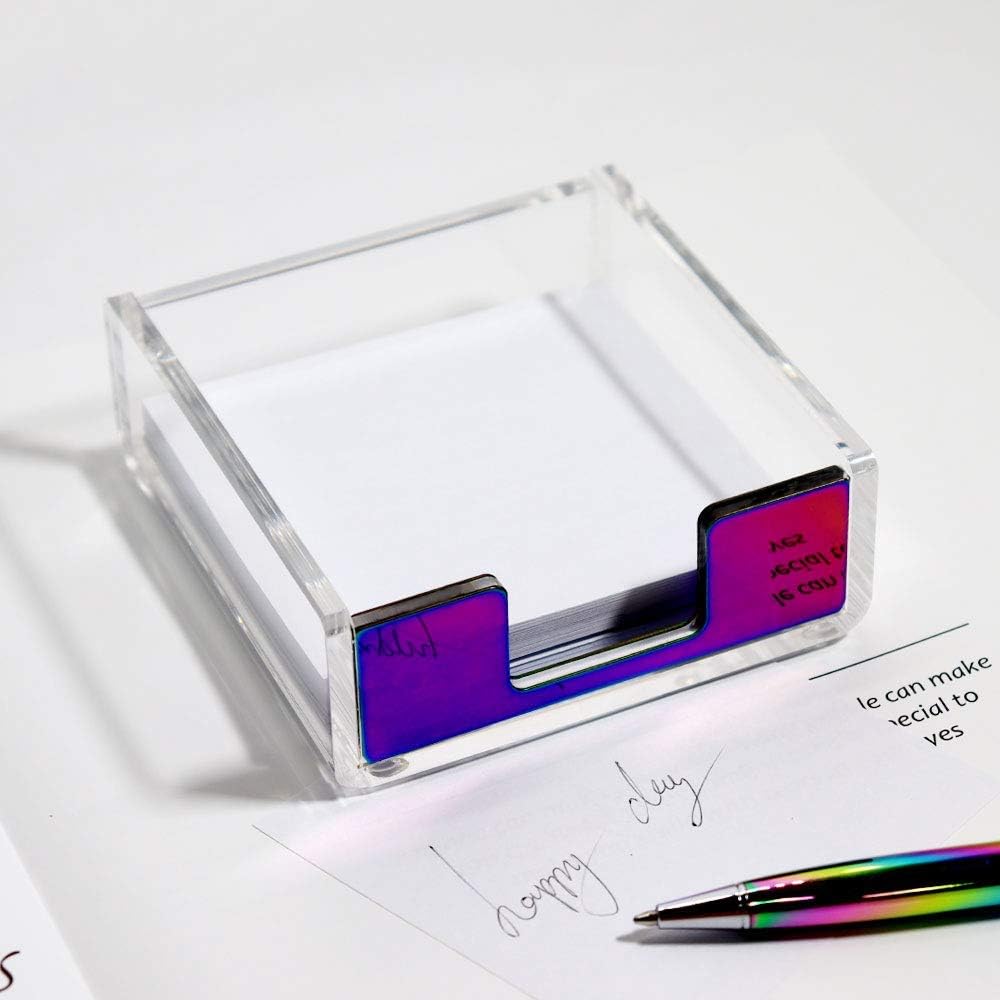 MultiBey Sticky Notes Memo Pad Holder Dispenser Rose Gold with Clear Desk Supplies Organizer Accessories for Office Home Schools (Colorful)