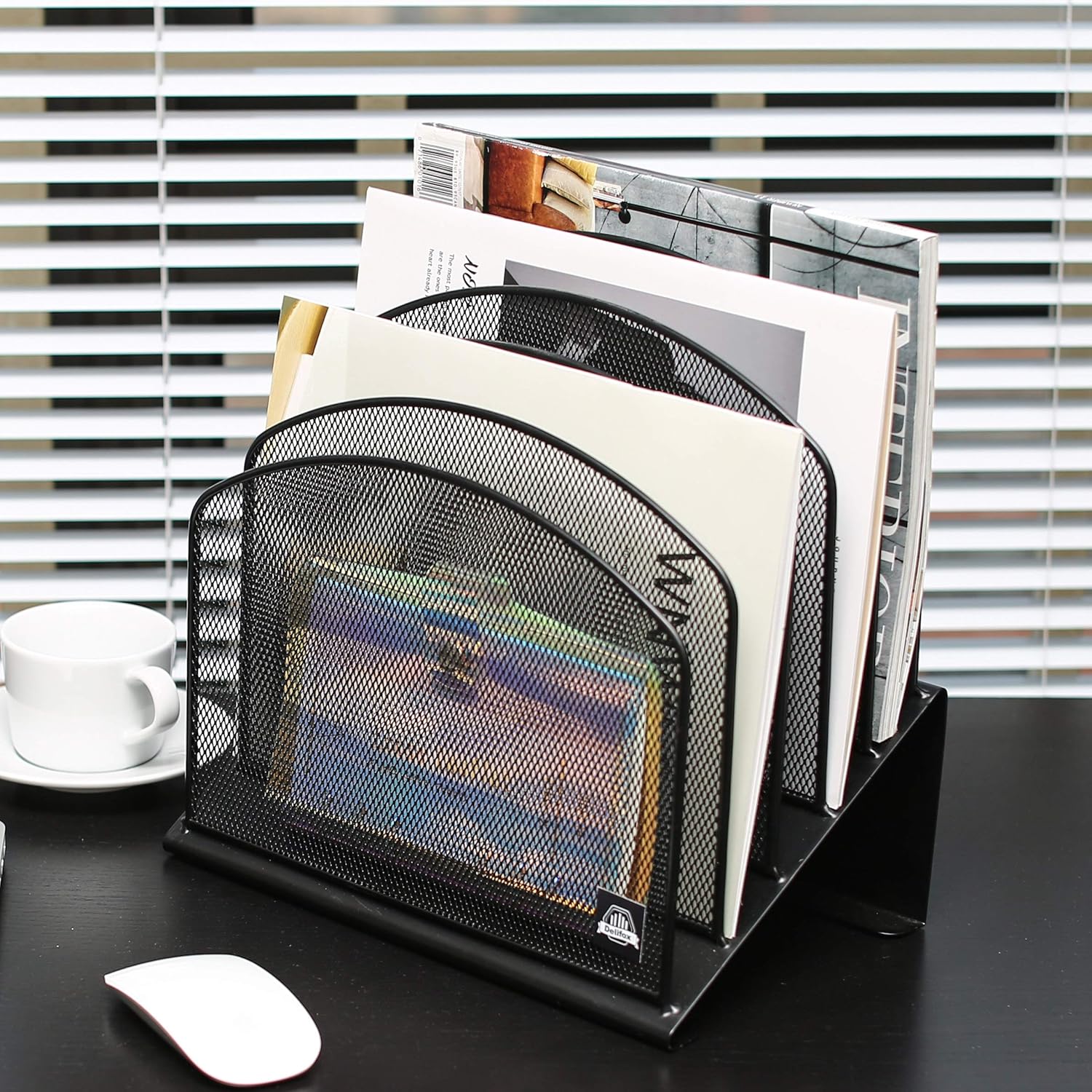 - ▶ THE HEAVY DUTY DESIGN. The vertical desktop file folder holder organizer is made of high-quality metal, which can guarantee enough durability and consumer satisfaction