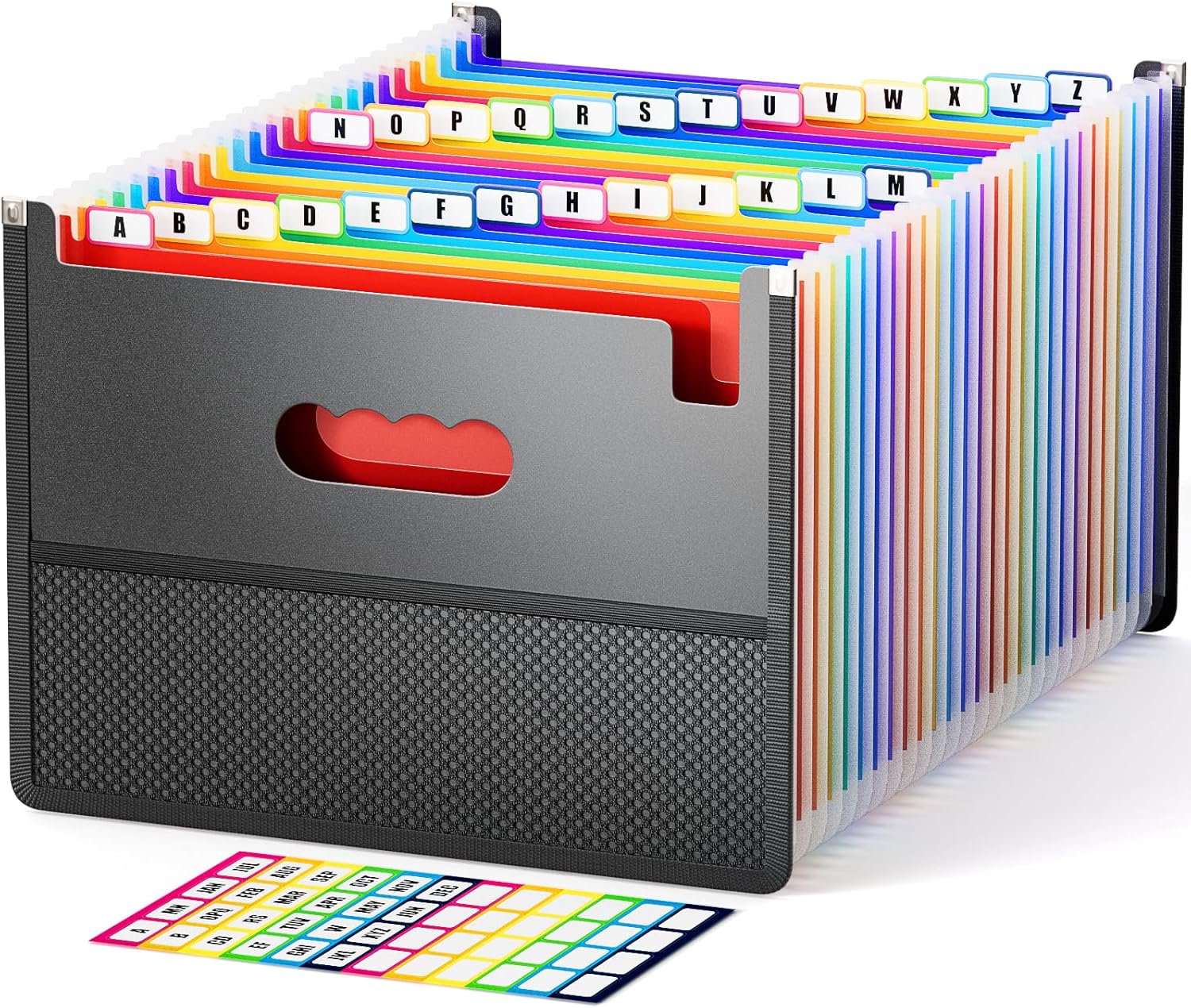 ABC life 26 Pockets Accordion File Organizer,Expanding Filing Box with Mesh Bag,Expandable A4/Letter Size Folder, Accordian Document Organizer,Portable Bill/Receipt Folders with A-Z Alphabetical Tabs