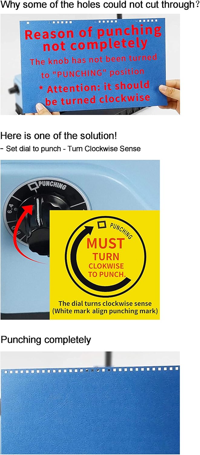- Manual Punching and Binding Operation. Punching holes quantity:34 holes and Square hole size: 0.15"×0.15"(4x4mm); Color: Light blue