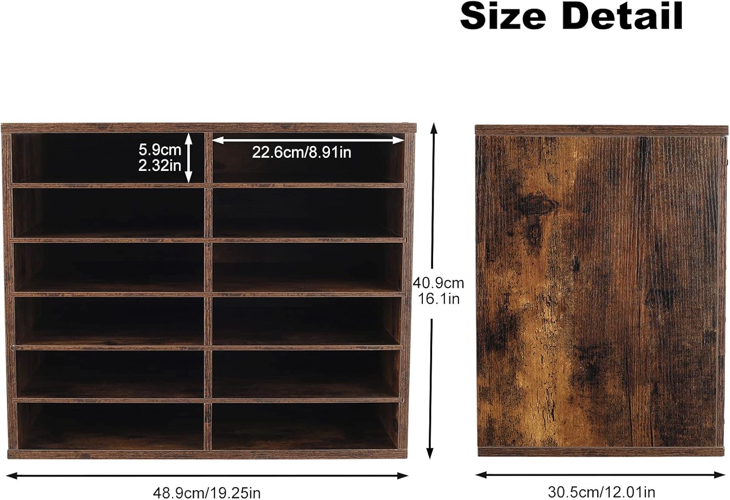 TQVAI Wood Adjustable Literature Organizer Desktop File Sorter Mail Center Paper Storage Cabinet Home & Office Mailbox School Classroom Keepers, 12 Slots Compartments, Archaize