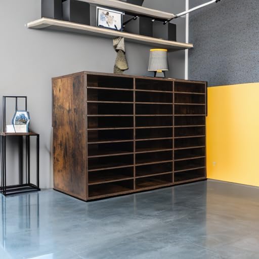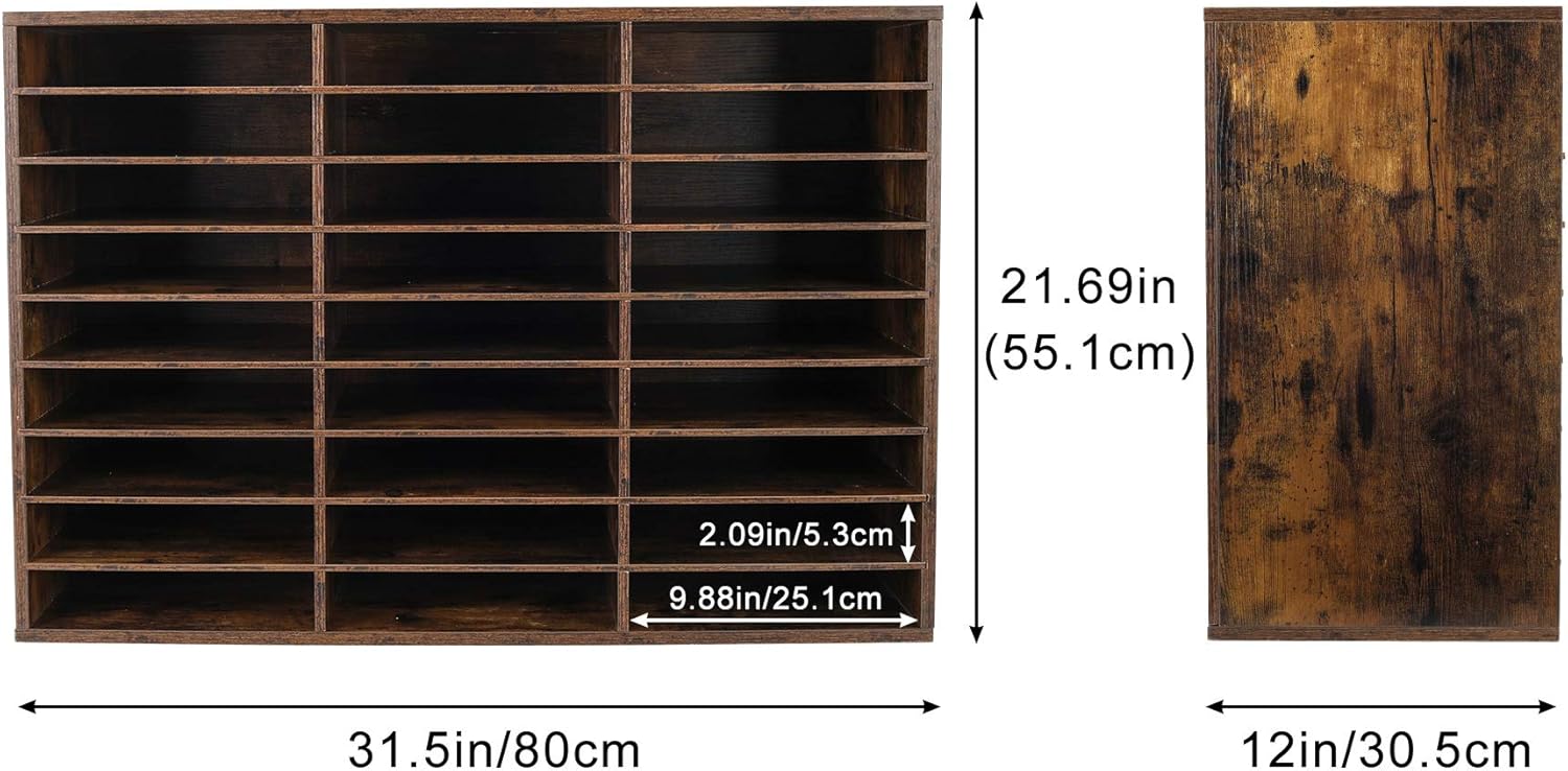 TQVAI Wood Adjustable Literature Organizer Desktop File Sorter Mail Center Paper Storage Cabinet Home & Office Mailbox School Classroom Keepers, 27 Slots Compartments, Archaize