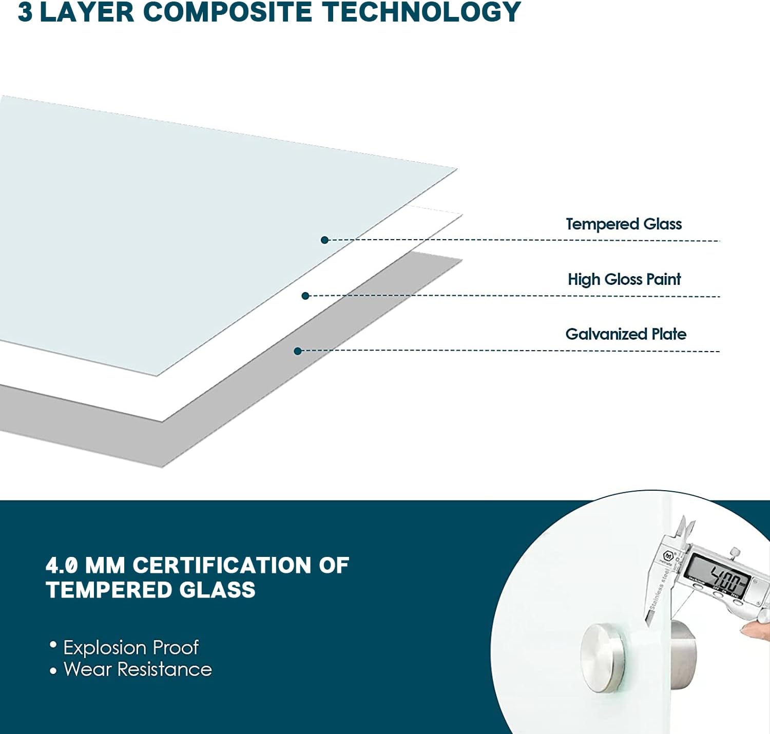 - 【Frameless Glass & Non-Porous Design】 Elevate your office or home with this premium tempered glass board who resists stains and ghosting. The sophisticated frameless design appears to float on the wall, making it a unique focal point of your space. Write from edge to edge to fully express your ideas. With ultra-white low iron glass whiteboard ,handwriting will be much clearer.