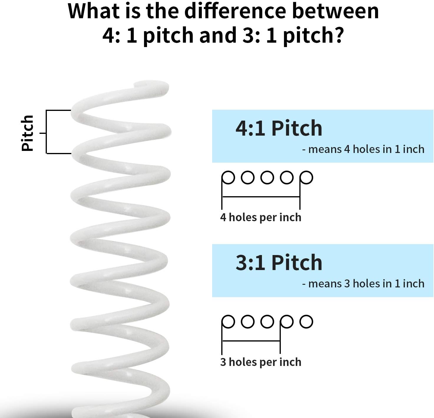 - 4:1 Coil binding ring means per inch has 4 holes (This is very important distinguish 3:1 pitch from 4:1 pitch cause the things to be as different. 3:1 means per inch has 3 holes. They are used with different binding machine.)
