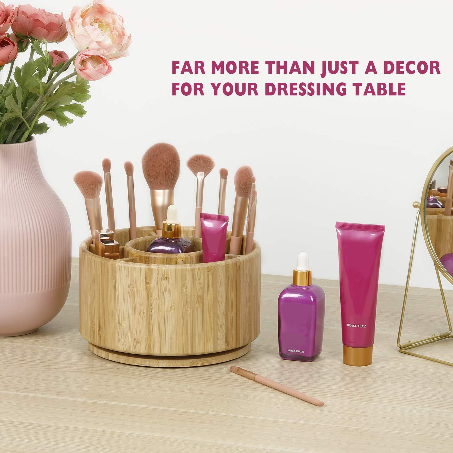 - 【MULTIFUNCTIONAL PURPOSE】Back to School Essentials. The spinning organizer is designed to keep your stuff well organized, 7 sections, 1 big round section in middle will be perfect for your pens, crayons, scissors, paint brushes, scissors, staplers stationery, cutlery and more. The elegant design of our desktop storage organizer makes it perfect to use for classroom, living room, office supplies,cosmetics and kitchen.