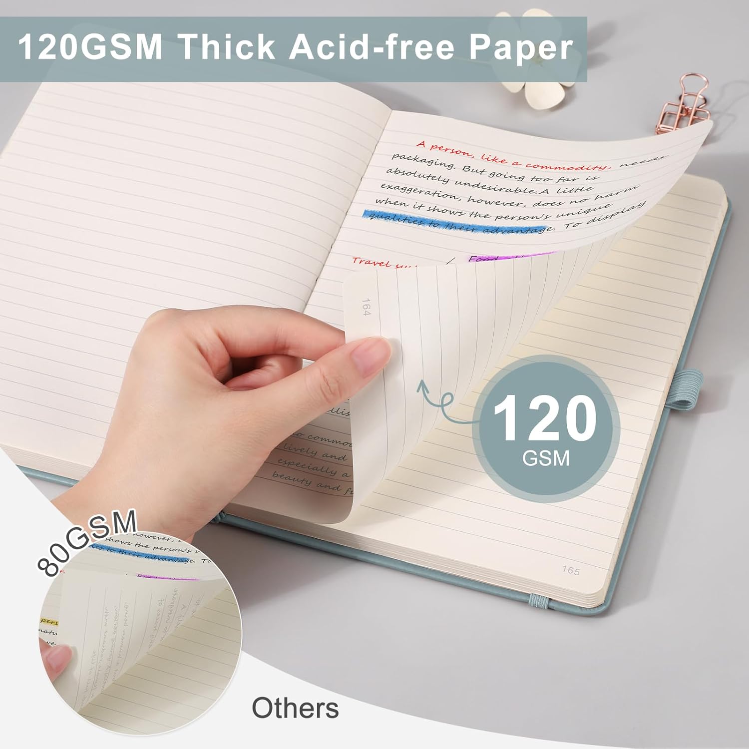 - 180° Lay Flat Design: The 180° lay flat design, along with a sturdy thread-bound binding, allows the notebook to open easily, making note-taking more efficient and reading more convenient. This design provides a comfortable writing experience, while the rounded corners help prevent damage and curling. The notebook features standard 7mm ruled lines, ideal for classic note-taking