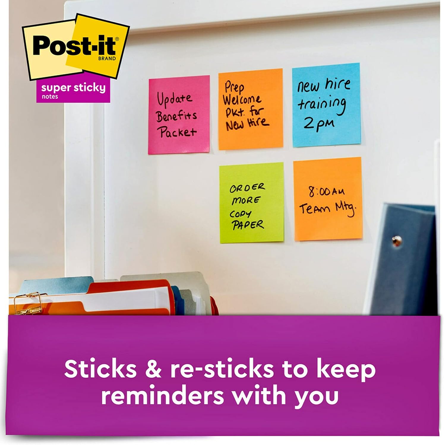 Post-it Super Sticky Notes, Assorted Bright Colors, 3x3 in, 15 Pads/Pack, 45 Sheets/Pad, 2X The Sticking Power, Recyclable, Multi-Color