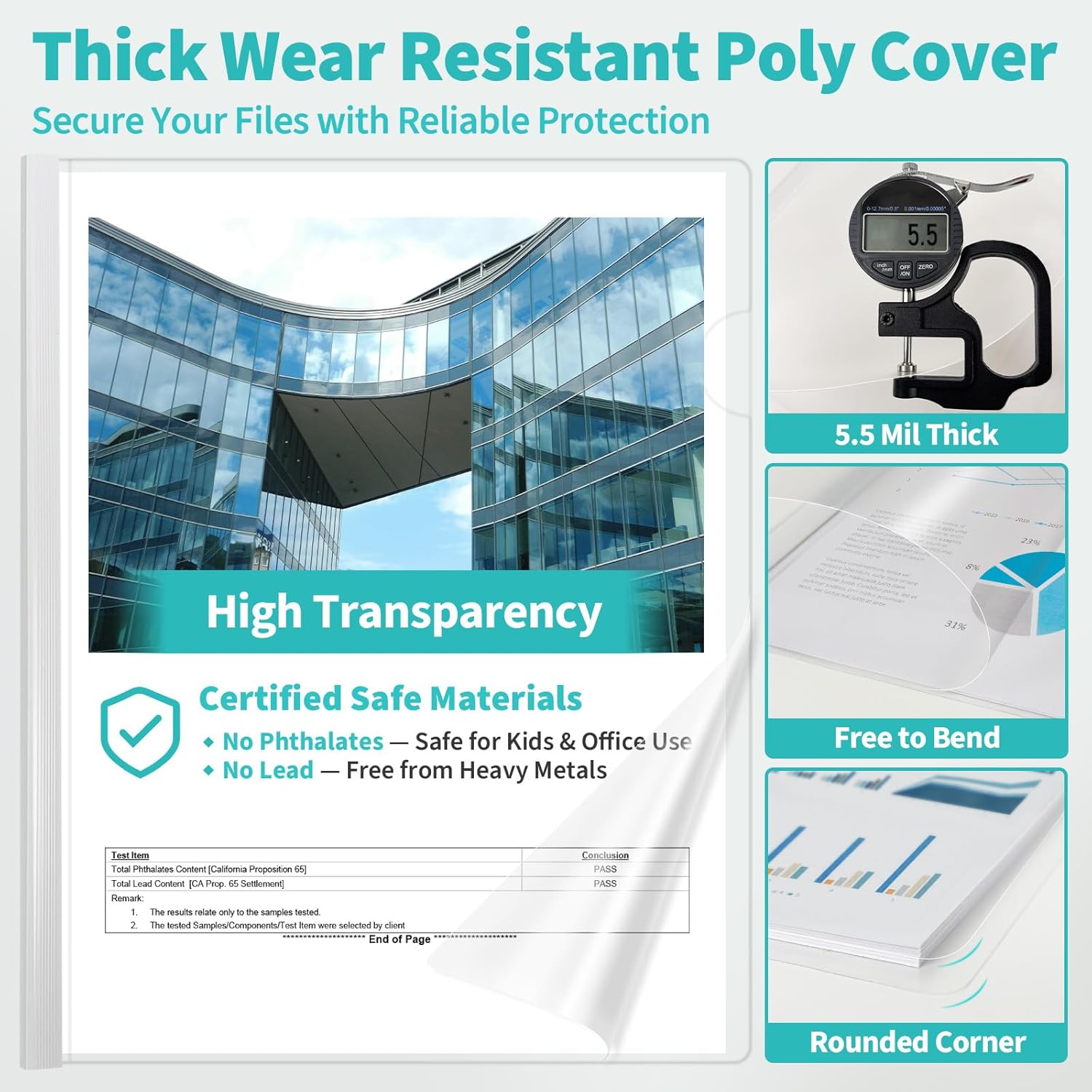 - 【25 Sheet Capacity】 The 5 mm sliding bar holds up to 25 sheets of 20 lb paper, offering a compact and practical solution for daily document organization. The 5.5 mil (140 mic) clear cover resists bending, tearing, and moisture, keeping files in good condition. Rounded corners offer a smooth touch and help prevent paper damage. Lightweight and portable, suitable for quick presentations and reports.