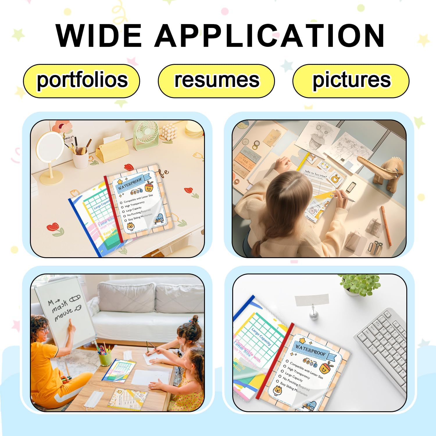 - WIDE USES: Clear report covers with sliding bars can be used as homework folders, presentation folders, file folders, suitable for schools, home or work to help display any presentations or reports.