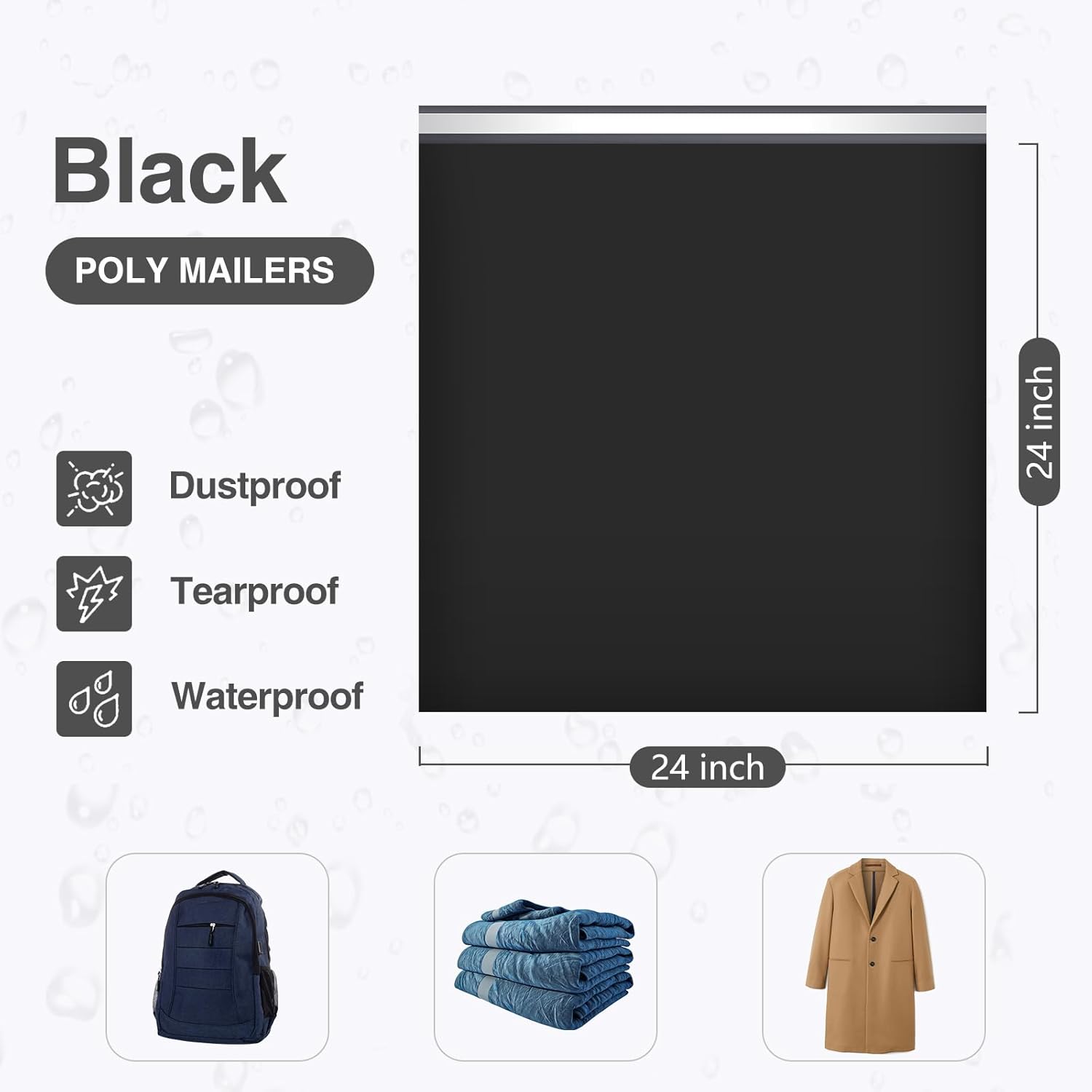 UCGOU Poly Mailers 24x24 Inch Black 100 Pack Extra Large Shipping Bags Strong Thick Mailing Envelopes Self Seal Adhesive Waterproof and Tear Proof Boutique Postal for Clothing Quilt and More