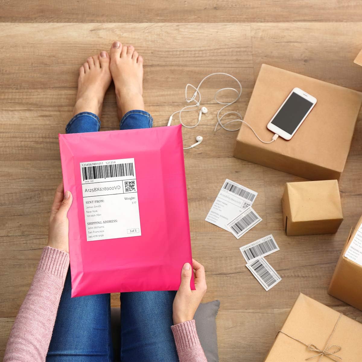 - Sturdy and Durable Construction: The thicken shipping bags covers with polyethylene material, making them not easily punctured and damaged. Beside, the shipping bags features with excellent waterproof and tearing proof effects because of the reinforce sealing on the edge. They can keep your value stuff safely to destination even though using on foggy or rainy days