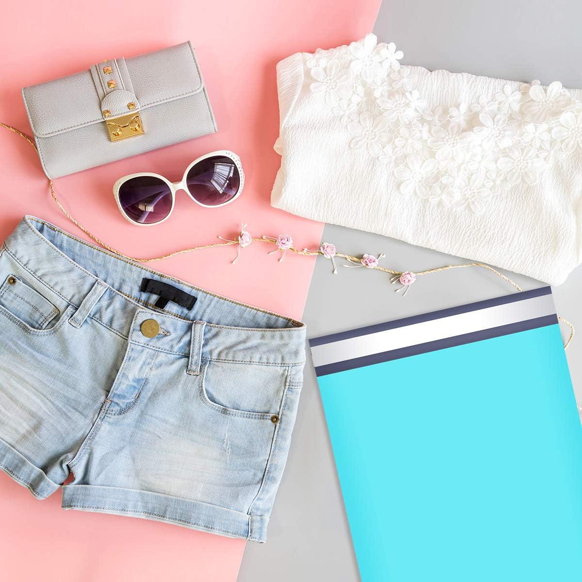 - Eye Catching Poly Mailers: The size of the bags is 10x13 inches. The teal is an attractive color that makes your products stand out of standard white poly mailers. With gray inner lining, these poly mailers are opaque. Used tear resistant material, UCGOU poly mailers can not only protect your privacy well during transportation, but also keep your goods arriving safely