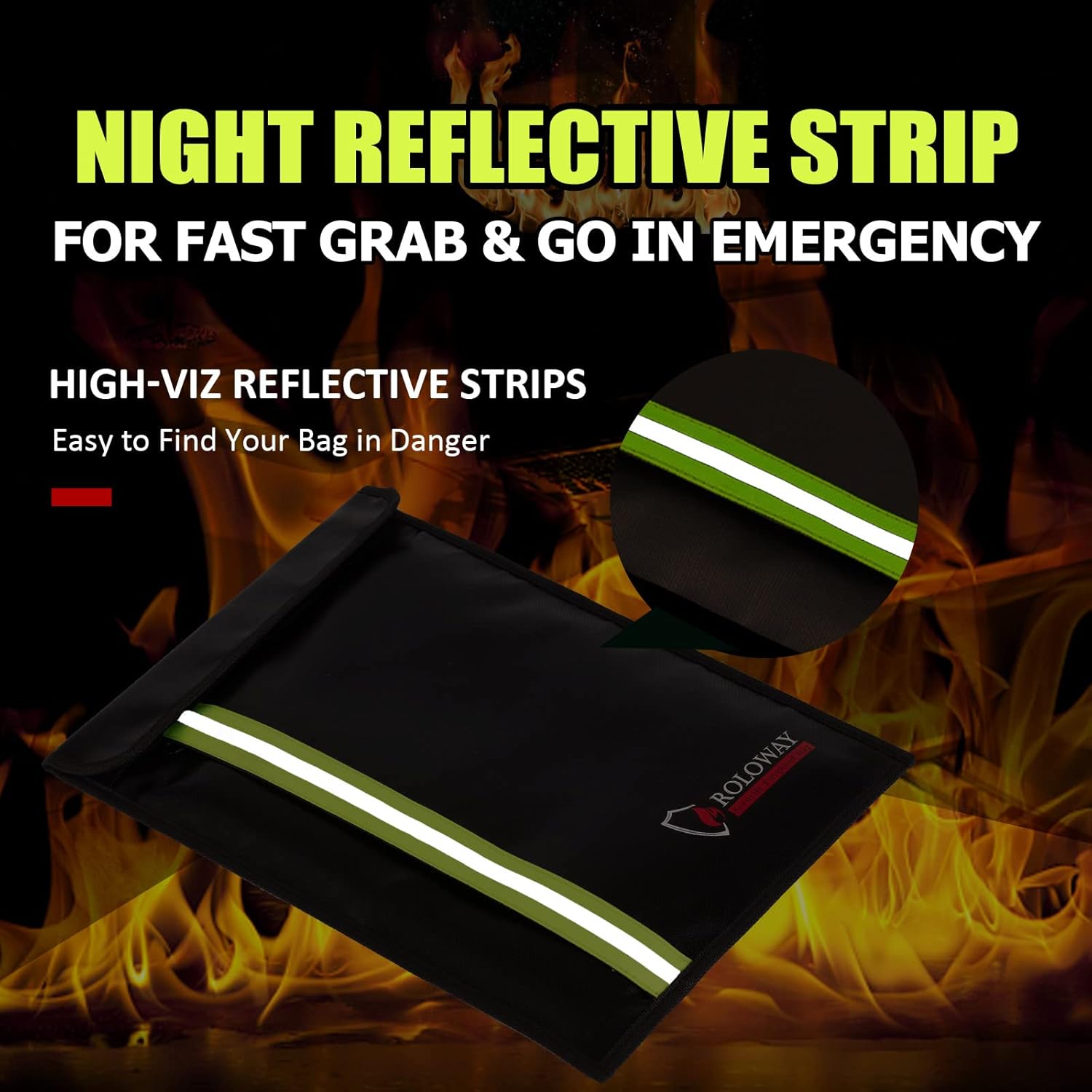 - [UPGRADED - NIGHT REFLECTIVE STRIP - FOR QUICK GRAB & GO]: In emergency, every minute counts. With the specifically designed Night Reflective Strip, you could find our fireproof envelope for cash very soon even at night, which means you could find & take your most precious items in our fireproof bag much easier and quicker. Don't waste time trying to find your valuables in the dark. With the High Visibility Design, our fireproof money envelope is great for Quick Grab & Go in emergency