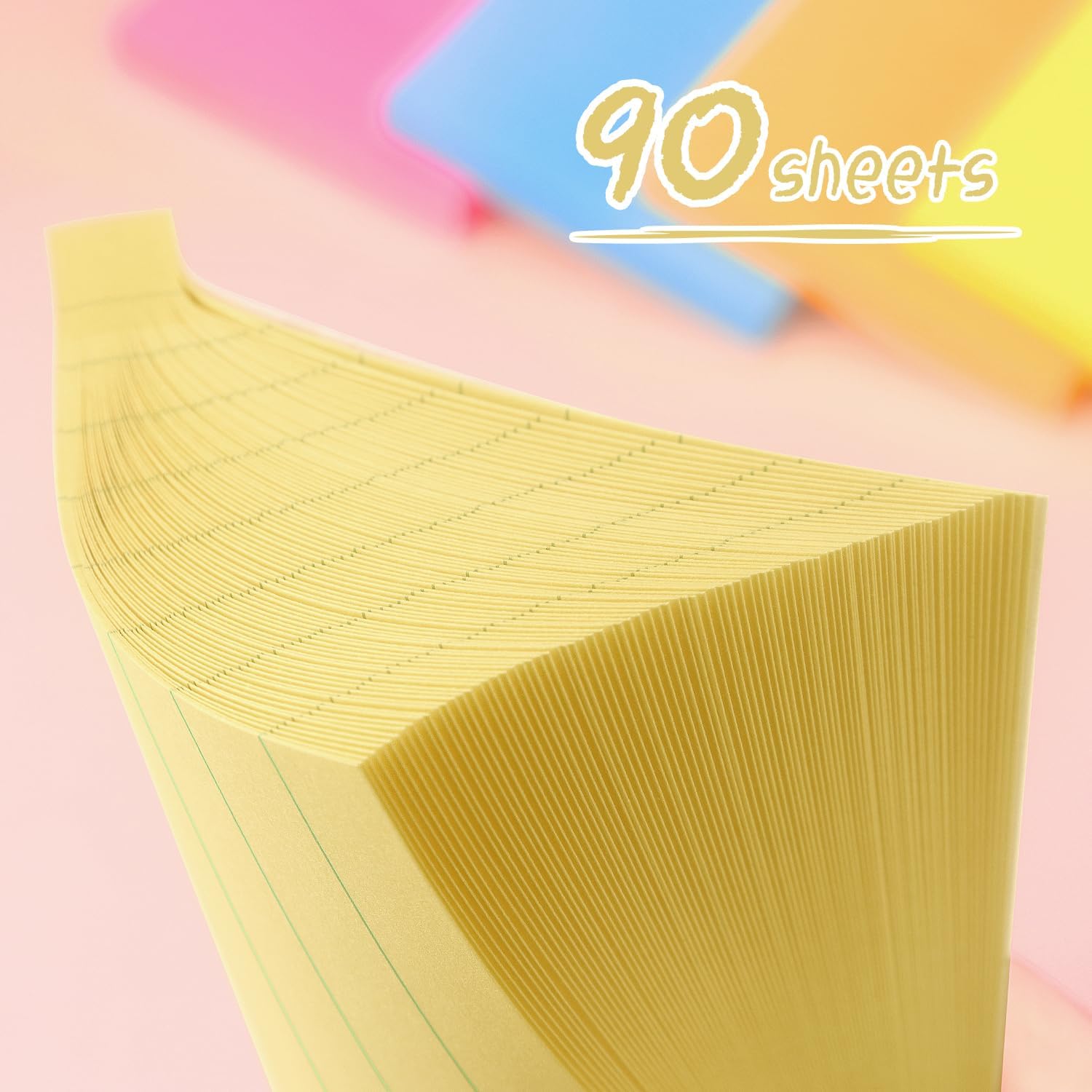 Lined Sticky Notes 3x3 Sticky Notes with Lines Self-Stick Notes Bright Color 4 Pads 90 Sheets/Pad (Yellow)