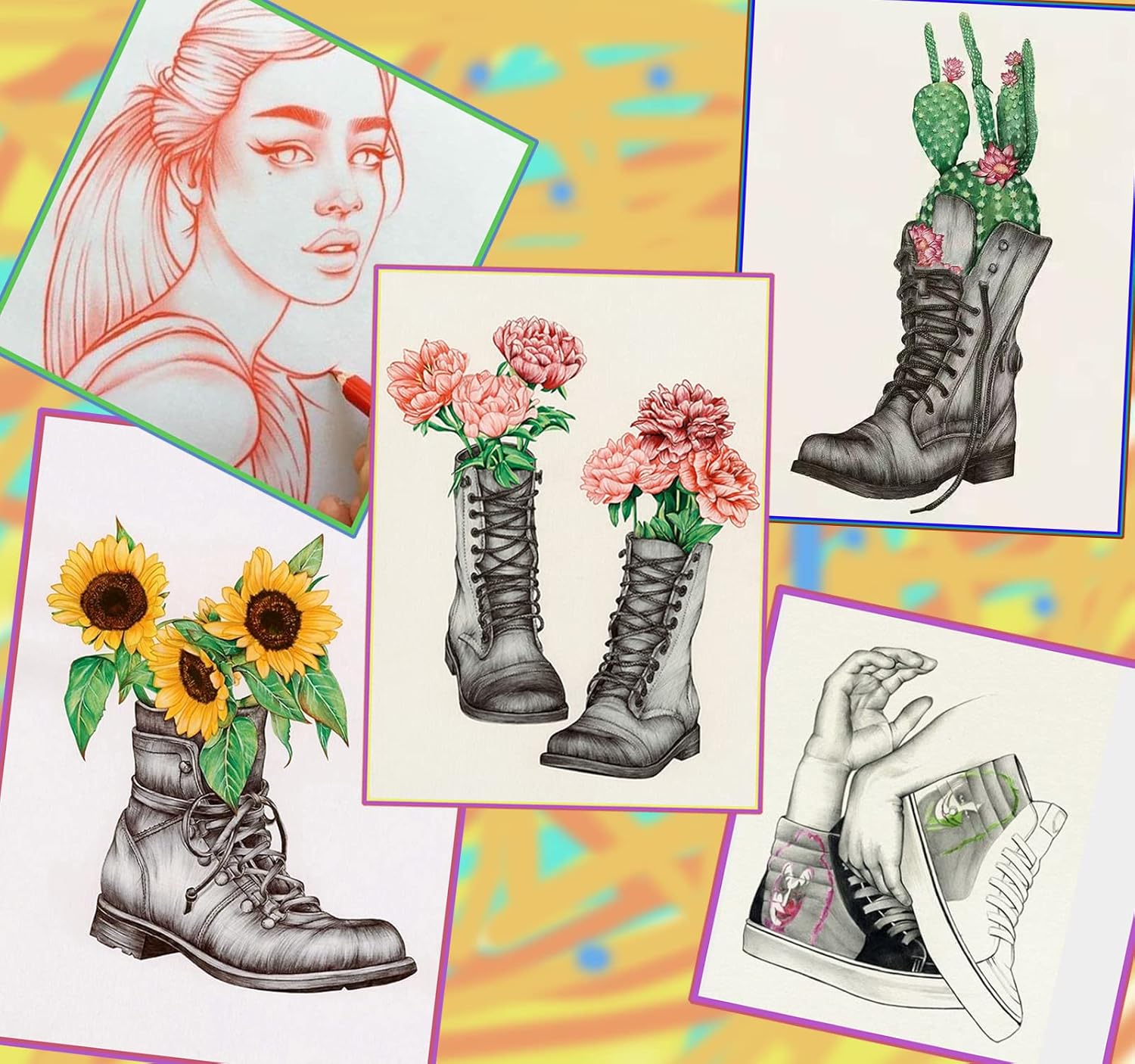 - 【Drawing Supplies】 50 Drawing pencil set has 24 color Colored Pencils, 14 Sketch Pencils(12B 10B 8B 7B 6B 5B 4B 3B 2B B HB 2H 4H 6H), 3 Charcoal Pencils,3 paper blending stumps,1 Eraser,1 Pencil sharpener,1 Ruler,1 Canvas carry package perfectly here.