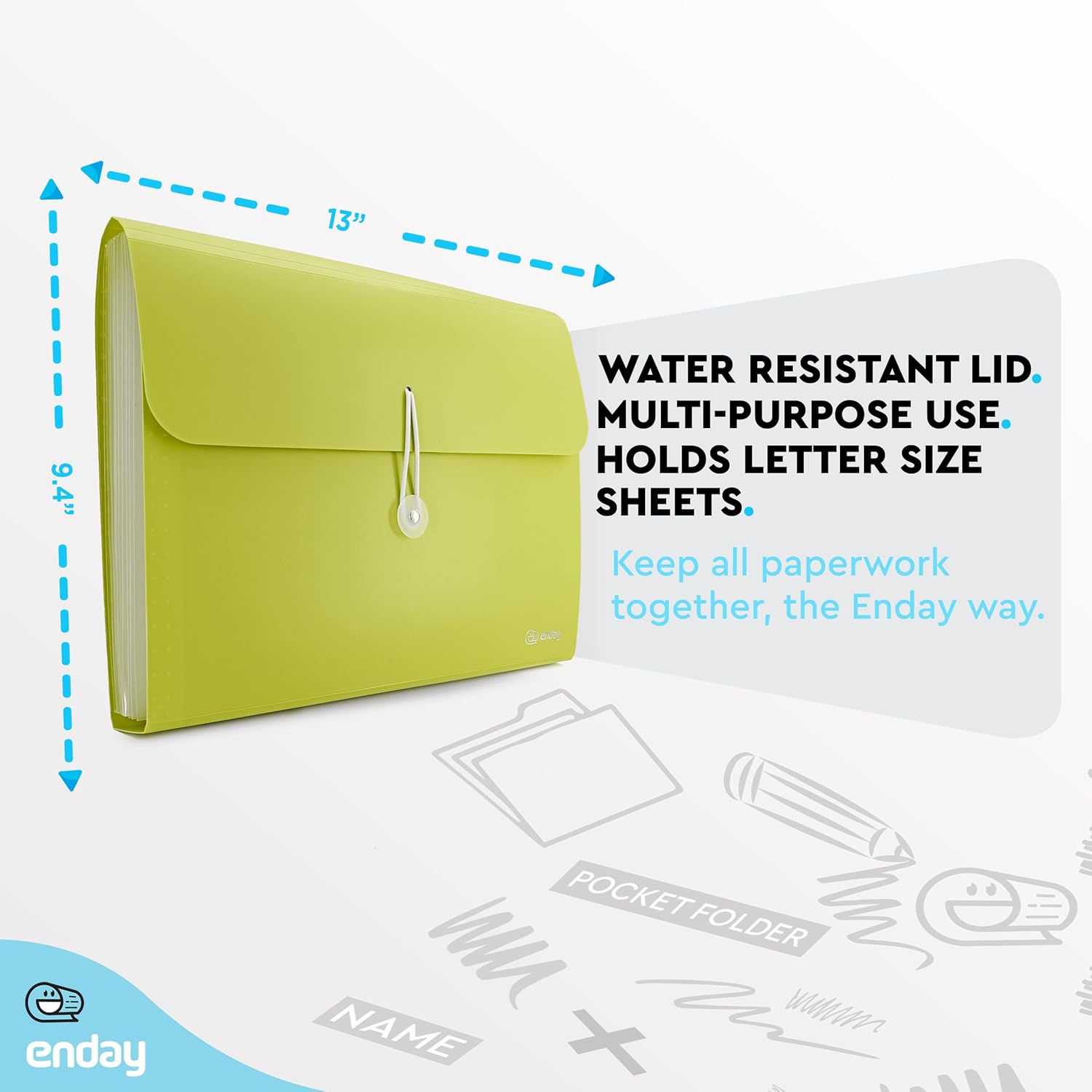 Accordion File Organizer 13 Pocket Expanding File Folder with Labels, Accordion File Organizer Letter Size Letter A4 Paper for Receipts, Bills and Documents 13" x 9.5” –by Enday