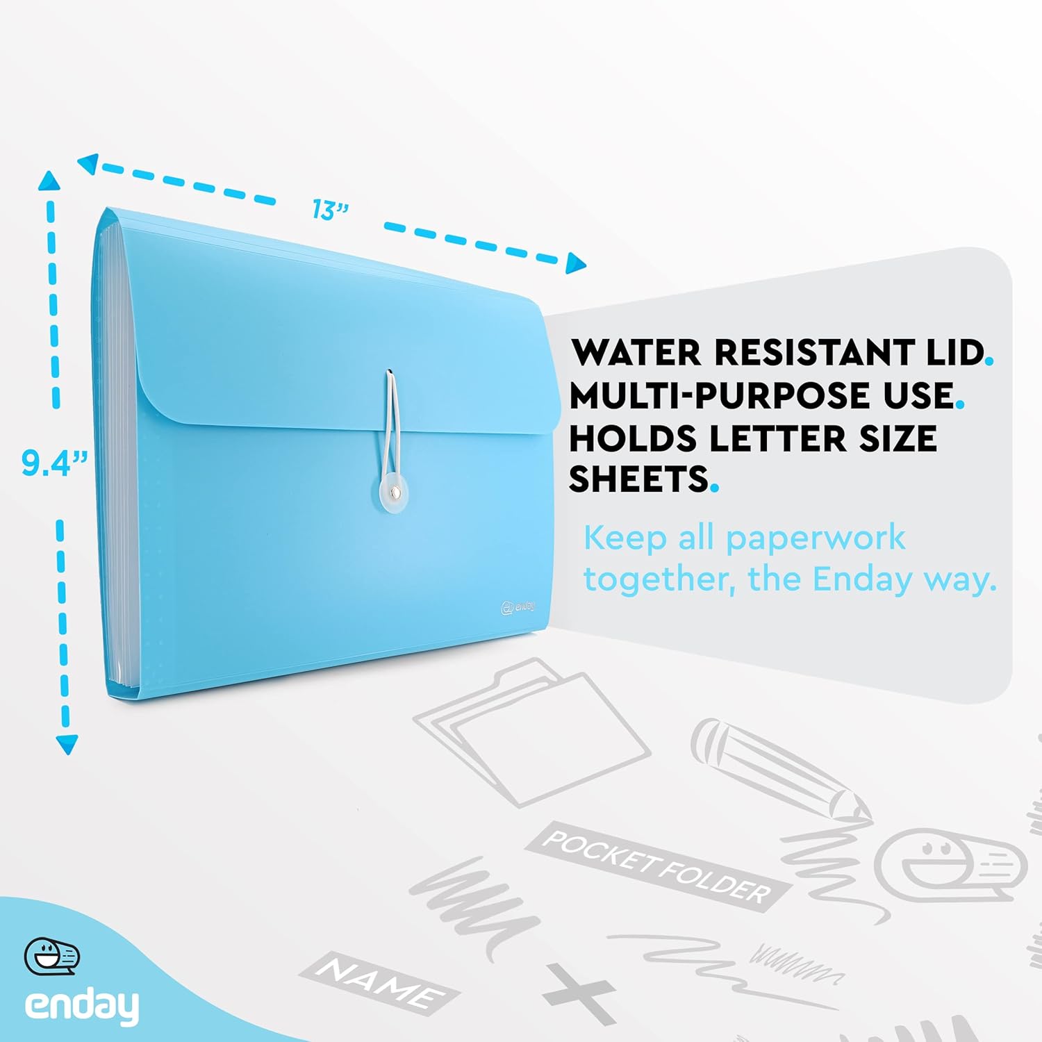 Accordion File Organizer, 13 Pocket Expanding File & Cover Folder with Labels, Plastic Portable Desktop Supplies Letter A4 Paper in Blue, Red, Green, Pink, Purple, Grey, Multicolor, (6 Pc) –by Enday