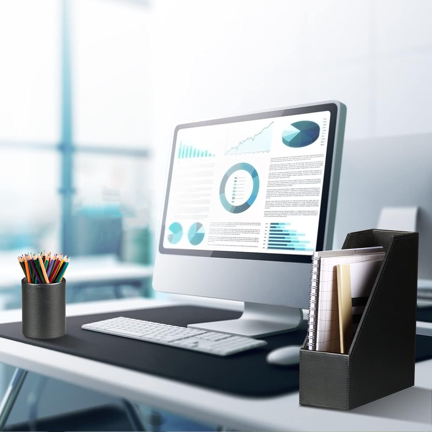- / DESK ACCESSORIES SET OF 6 PIECES : Include 1*Magazine& Files Holder 1* Mails& Letter Sorter 1*Pens/Pencils Holder Cup 1*Sticky Note Container 1* Letter Paper Tray 1*Business Card Holder. Storing all office supplies in organized, accent your workspace and study room with this desk organizer set.