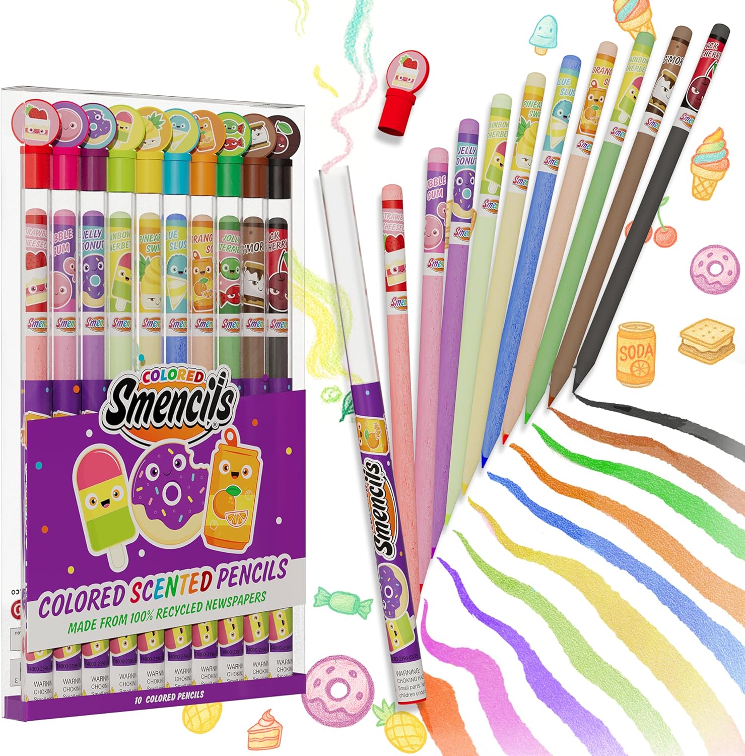 Colored Smencils (2 Pack) - Patented Gourmet Scented Colored Pencils made from Recycled Newspapers, 10 Count, Gifts for Kids, School Supplies, Classroom Rewards