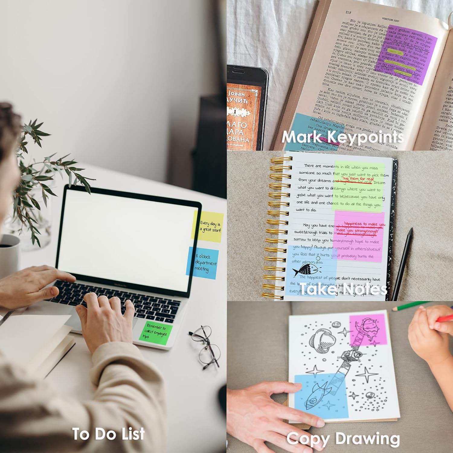 - 📖【Multiple Colors】 : Translucent sticky notes set includes 6 colorful sticky note pads, choose the different classic colors according to your moods. The additional 4 clear transparent sticky memo pads is suitable for any occasion, like office home school for annotating reading studying .