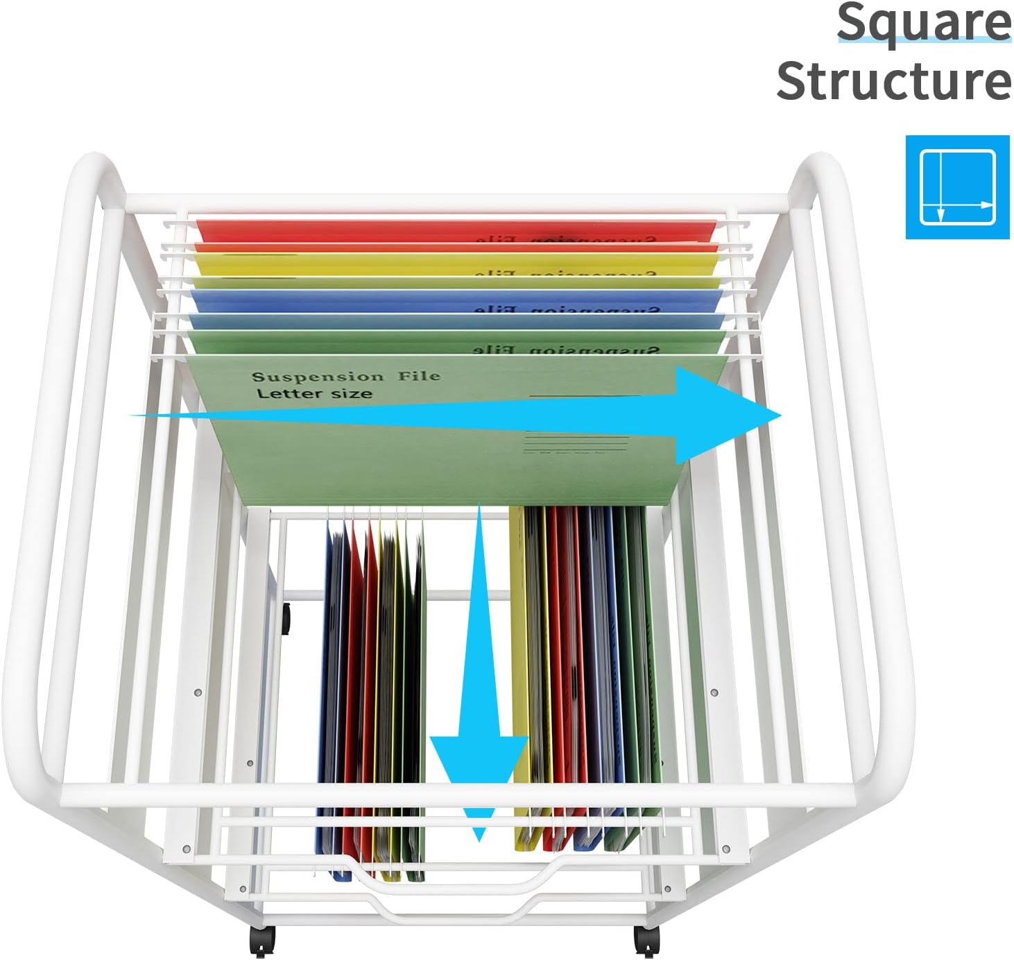- 【Convenient Hanging Folder Cart】Special for letter size, square size can choose two different directions to hang files, each layer of frame can perfectly accommodate letter sized folders.