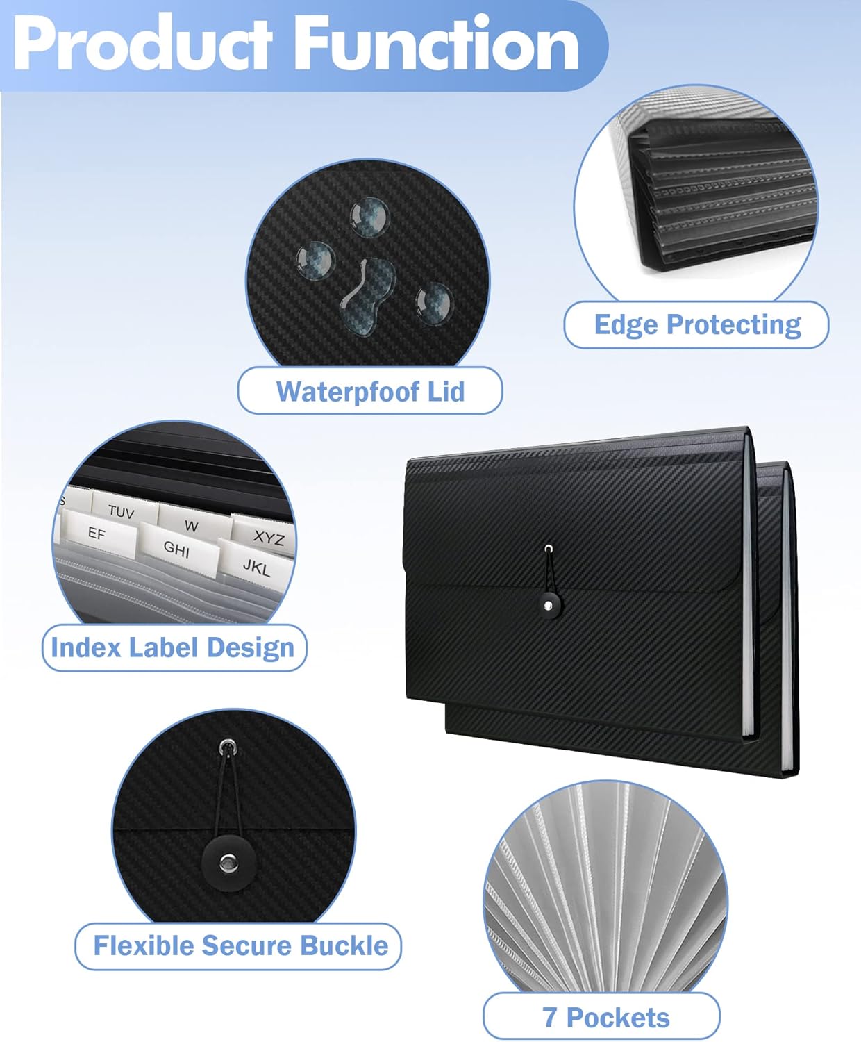 - What You Get : 1x Black 7-pocket Expanding File Folders, Size: 33 * 24 * 3.5 cm, which can store letters, A4 paper, documents, invoices, contracts and regular US papers, The document paper folder is easy to carry, can be put in your backpack, briefcase etc