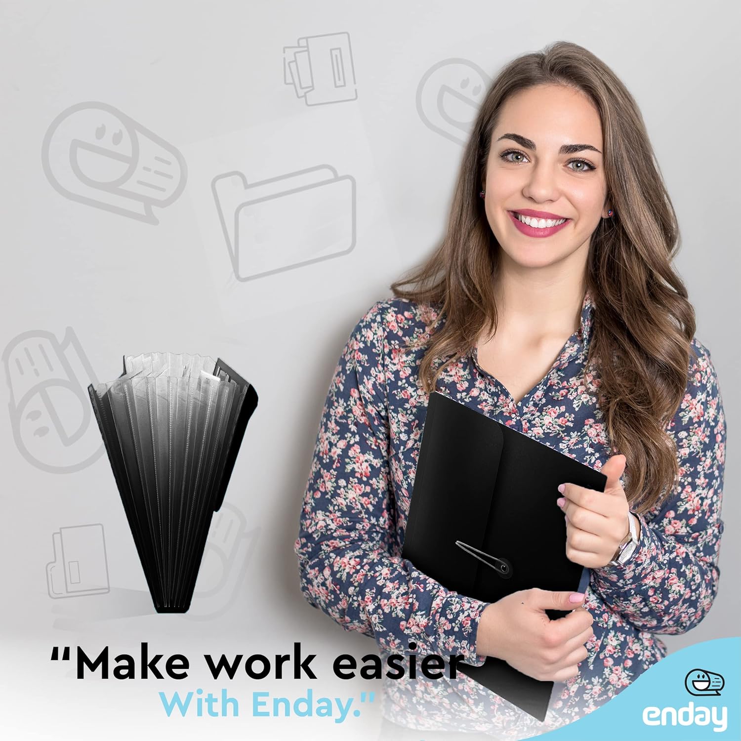 Accordion File Organizer Black, 7 Pocket Expanding File and Cover Folder with Labels, Plastic Portable Desktop Letter A4 Paper – by Enday
