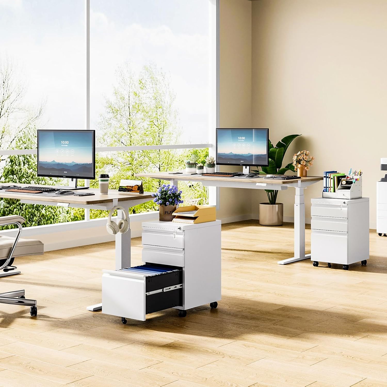 - 【Rolling Fill Cabinet 】: Equipped with 2 lockable casters + 2 x 360° swivel casters + 1x anti-tilt wheel, you can move it easily and safely. 360° swivel casters go to any direction easily, while lockable casters offer braking and the center support wheel prevents tipping.