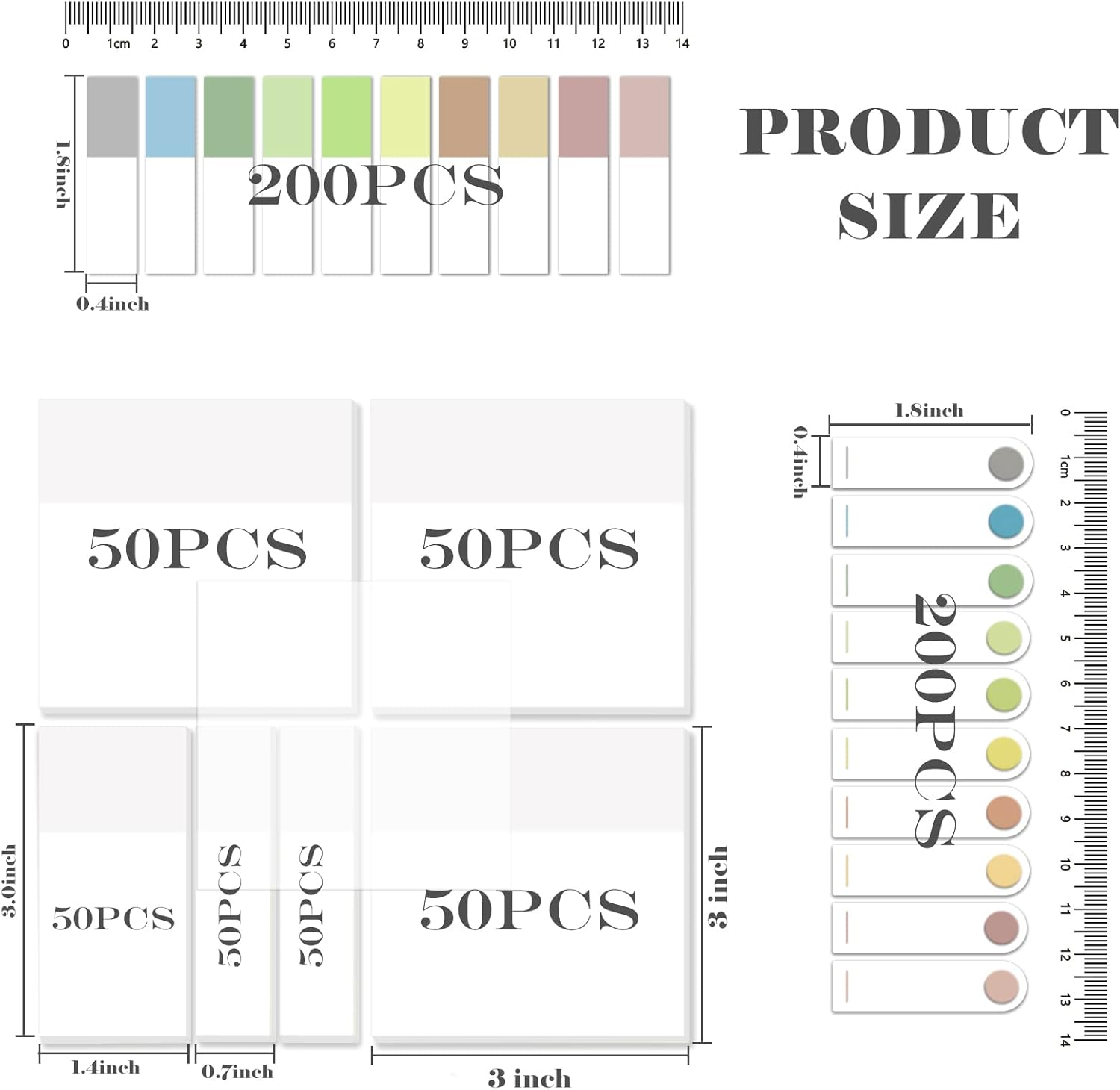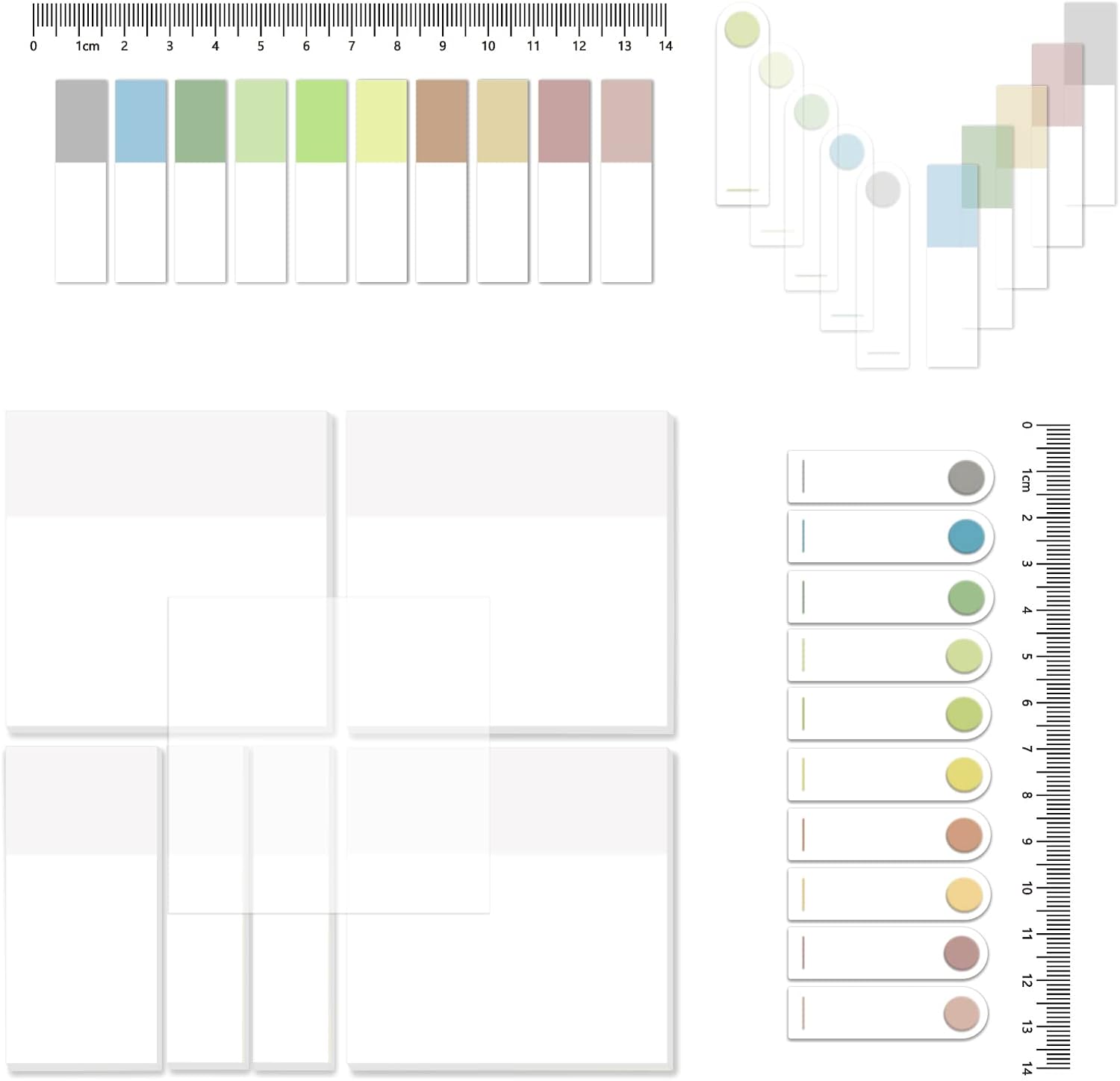 - What Will You Get: 150 Sheets transparent sticky notes( 3x3 inch ), 50 Sheets translucent sticky notes(3x1.4 inch), 100 Sheets translucent sticky notes(3x0.7 inch), 400 Sheets morandi pastel different colors book tabs(1.8x0.4 inch)