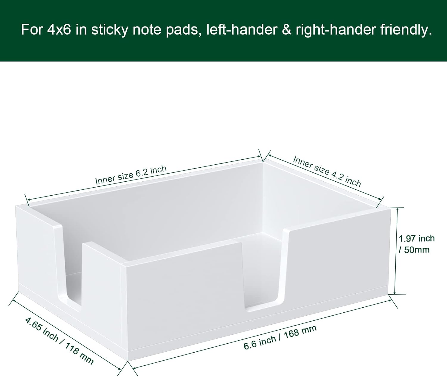 - Self-Stick Note Pad Holder: with square-shaped design and inside dimensions of L*W*H, it's wide enough to hold all kinds of 3-by-3-inch pad of paper, such as post notes, colorful sticky notes, cube paper or pads
