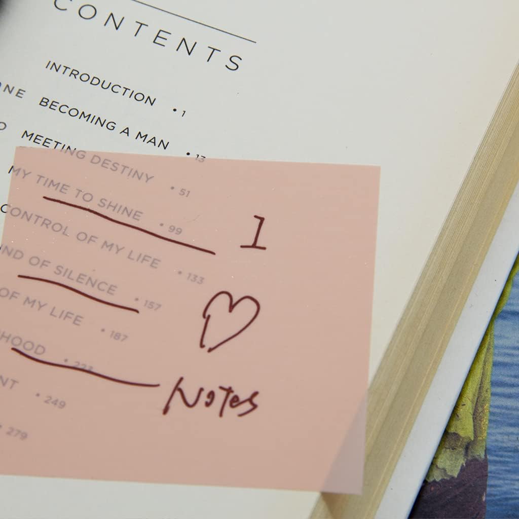 400 Sheets Pastel Transparent Sticky Notes, 3x3 inch See Through Sticky Notes, for Reading Writing Notes Book Markers, Office School Supplies, 50 Sheets/Pad (8 Pads)