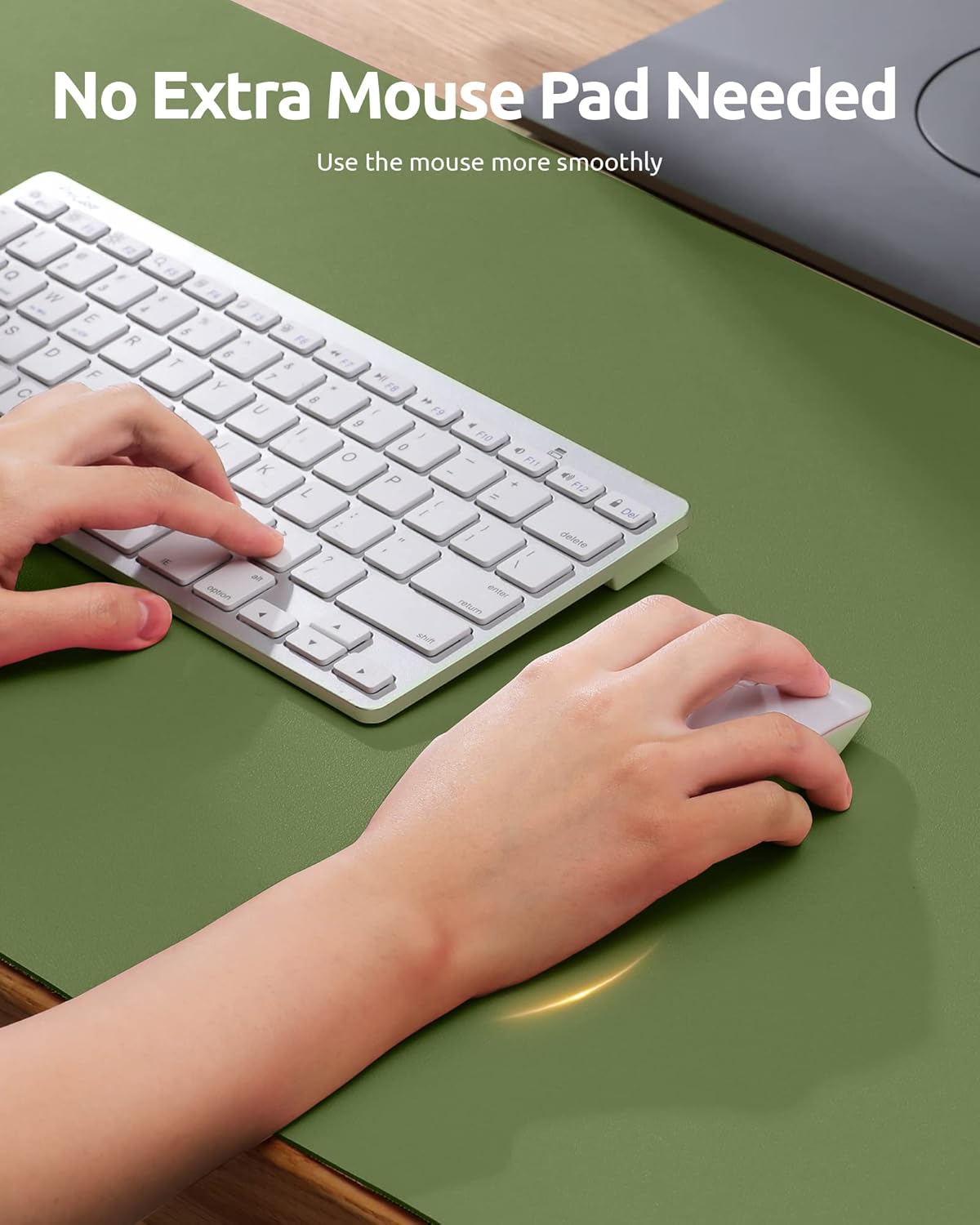 - LARGE MOUSE PAD: With our large desk pad, say goodbye to small extra mouse pad. Make your desk top looks tiny and professional. With special suede design for back side,increase friction resistance with the desktop, Non slip. The friction resistance is increased by 70% than that of double-sided leather.