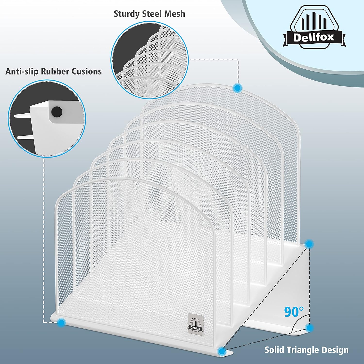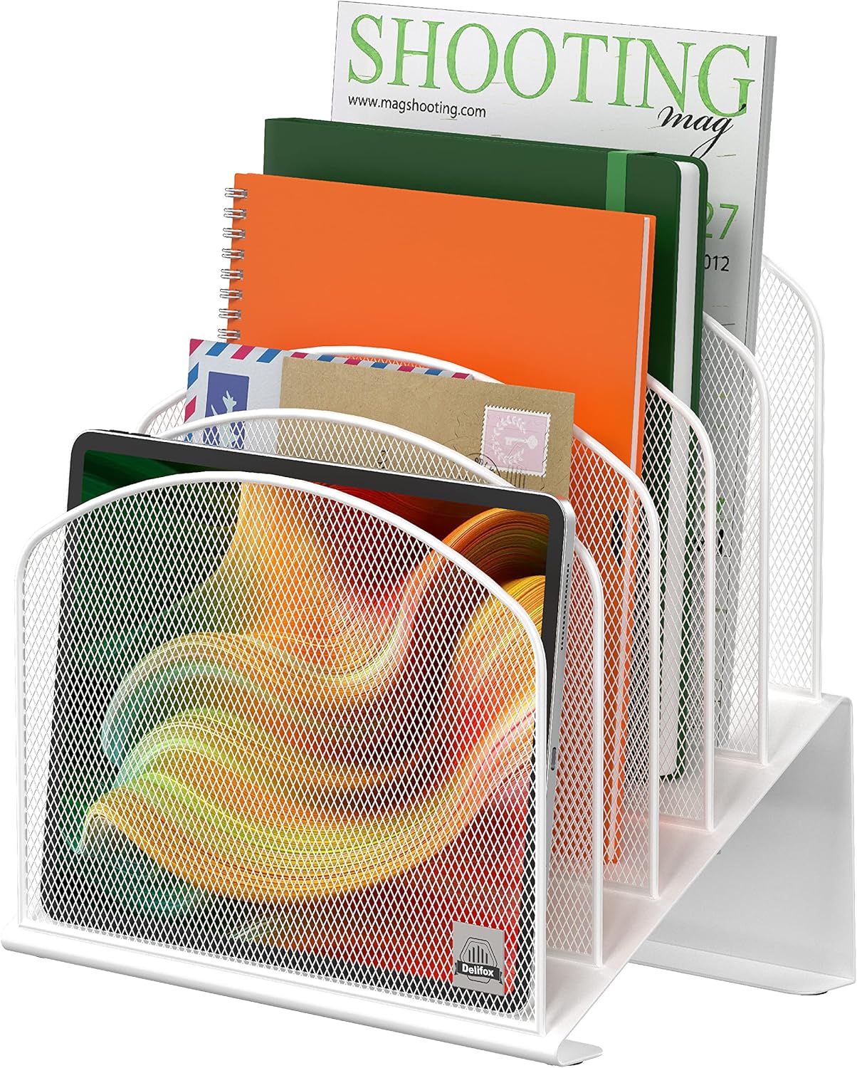 - ▶ SUFFICIENT SPACE FOR STORAGE. Delifox 5-compartment desktop file organizer is large enough to hold and classify many document or papers so as to eliminate worry of document run-off and keep track of files, folders, and other important papers