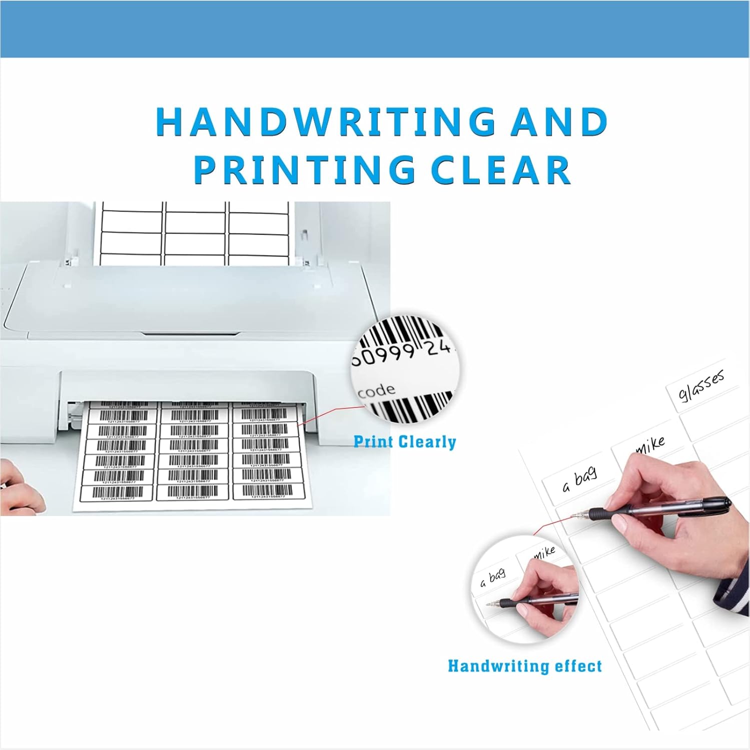 - 【PREMIUM MATERIAL】-- The address label sticker paper texture is a bit thicker than regular paper, ensure easier to writing and easier to peel from backing; Meanwhile mailing labels that have great adhesion and stay where they are put, without curling up and popping off. Address labels in addition to their sticking capabilities, they need to produce bright, clear, clean text and images, easy to work with