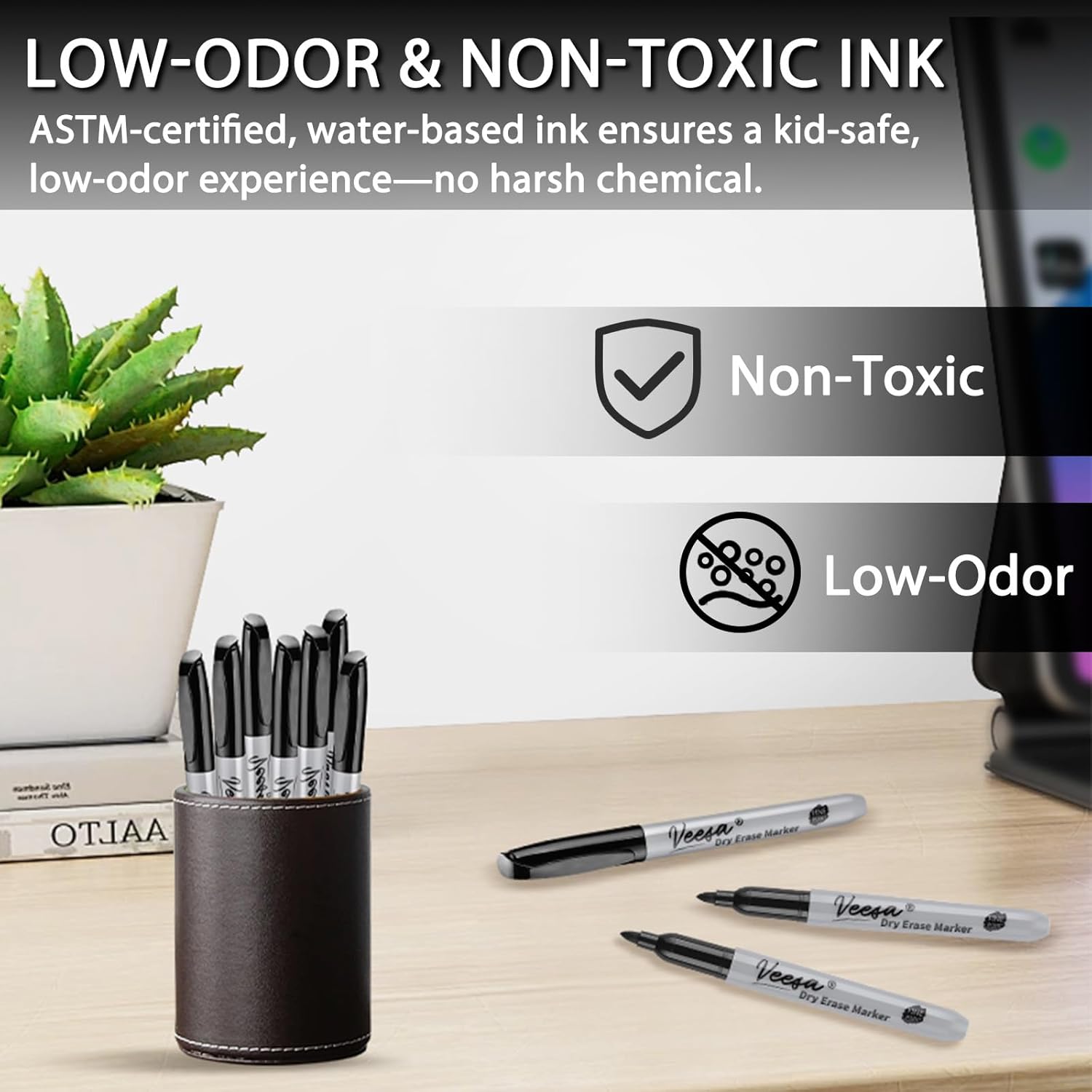 VEESA Dry Erase Markers Black, Fine Tip, 75 Count Low-Odor Whiteboard Marker Pens, Back to School Supplies, Office Series
