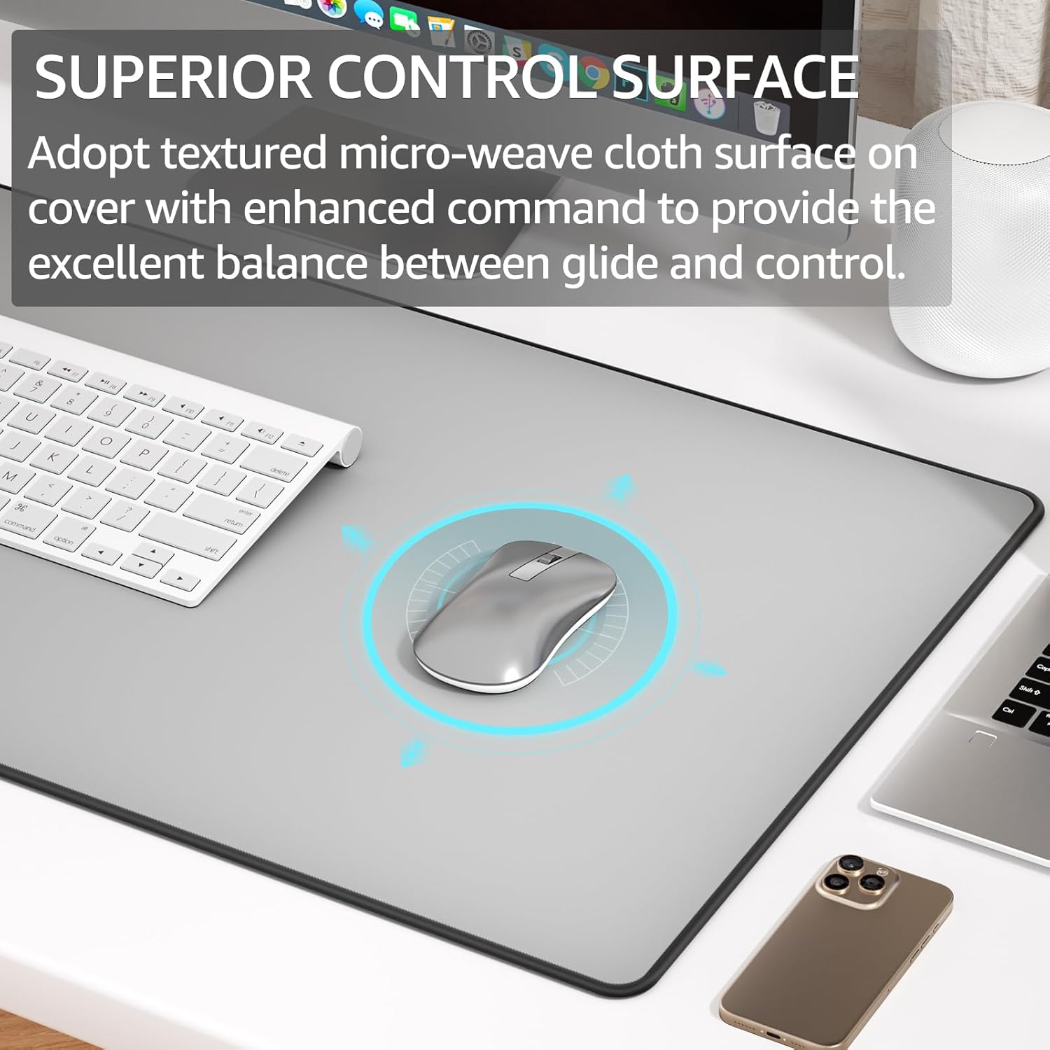 - Non-slip Rubber Base: The soft and dense non-skid nature rubber base keeps this desk pad firmly in place. This large mouse mat remains uniformly flat even over imperfect surfaces. Just immerse into your work or games without worrying about the annoying mouse pad movement.