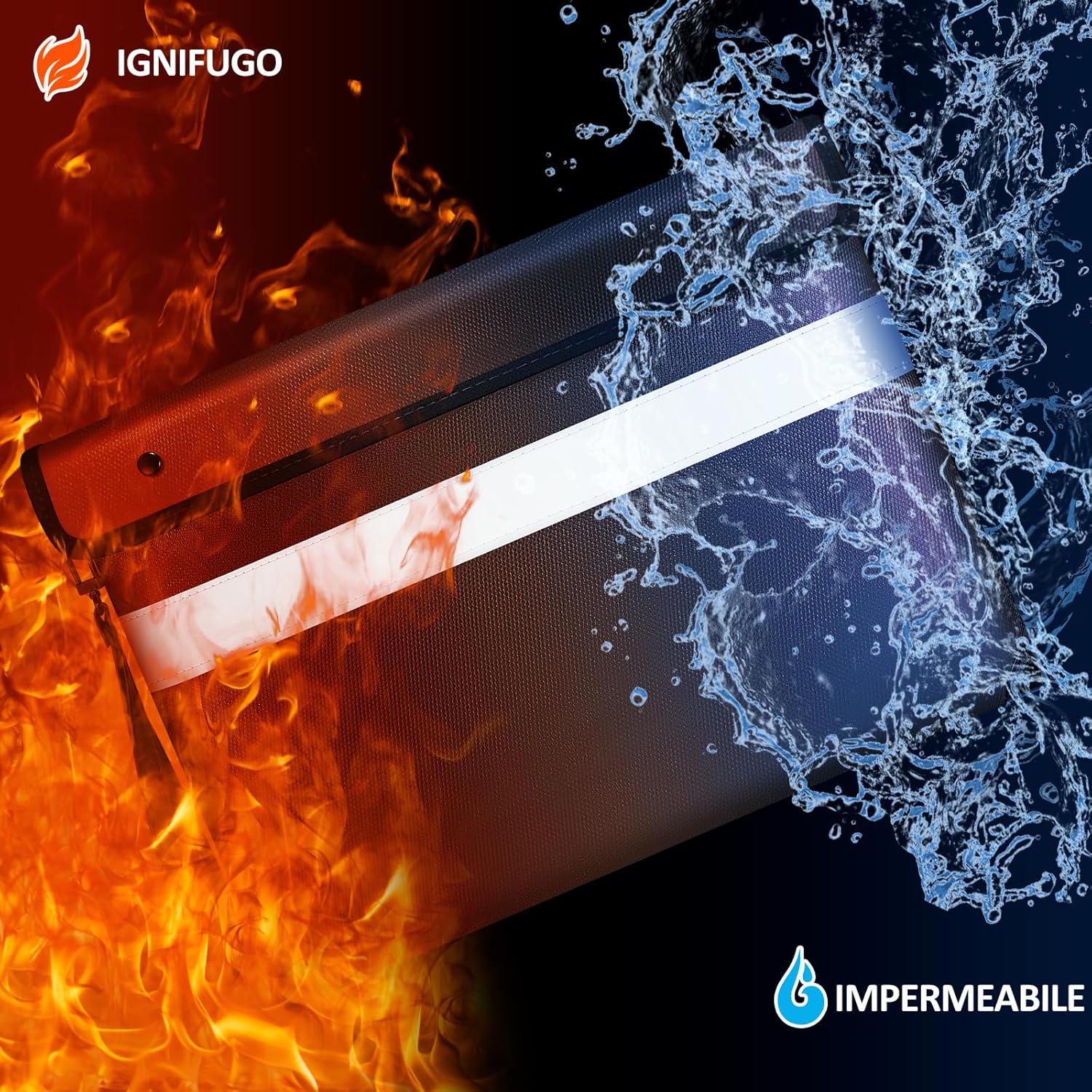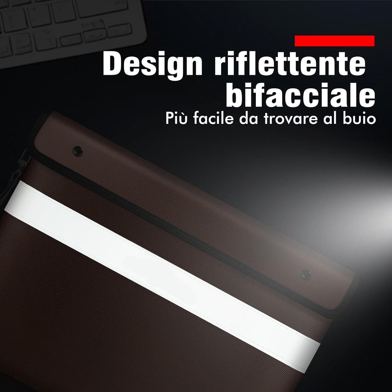 - ☔【Unique Design】This fireproof bag is not only functional but also stylish. It has a unique double-sided reflective strip that allows you to clearly see its position in the dark no matter how you place it. Its zipper is a treated waterproof zipper, combined with the Sticky buckle flip closure design, so that the fireproof bag can protect your documents under high-pressure water cannon, but note that it is not waterproof when submerged underwater.