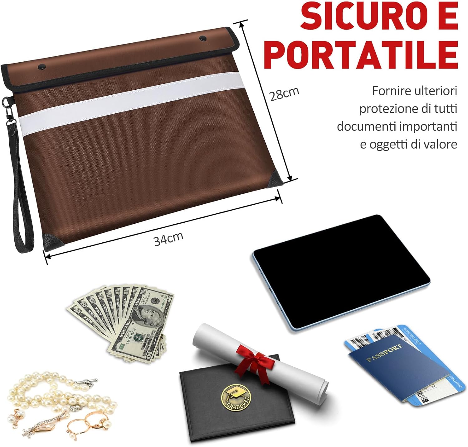 - 👜【Convenient to Carry】Measuring 13.9x10.6 inches, this fireproof document bag fits A4-sized A4 document holder, tablets, diplomas, degrees, and state licenses. Its fire-resistant silicone also prevents users from being allergic to fiberglass, making you more comfortable and safe.