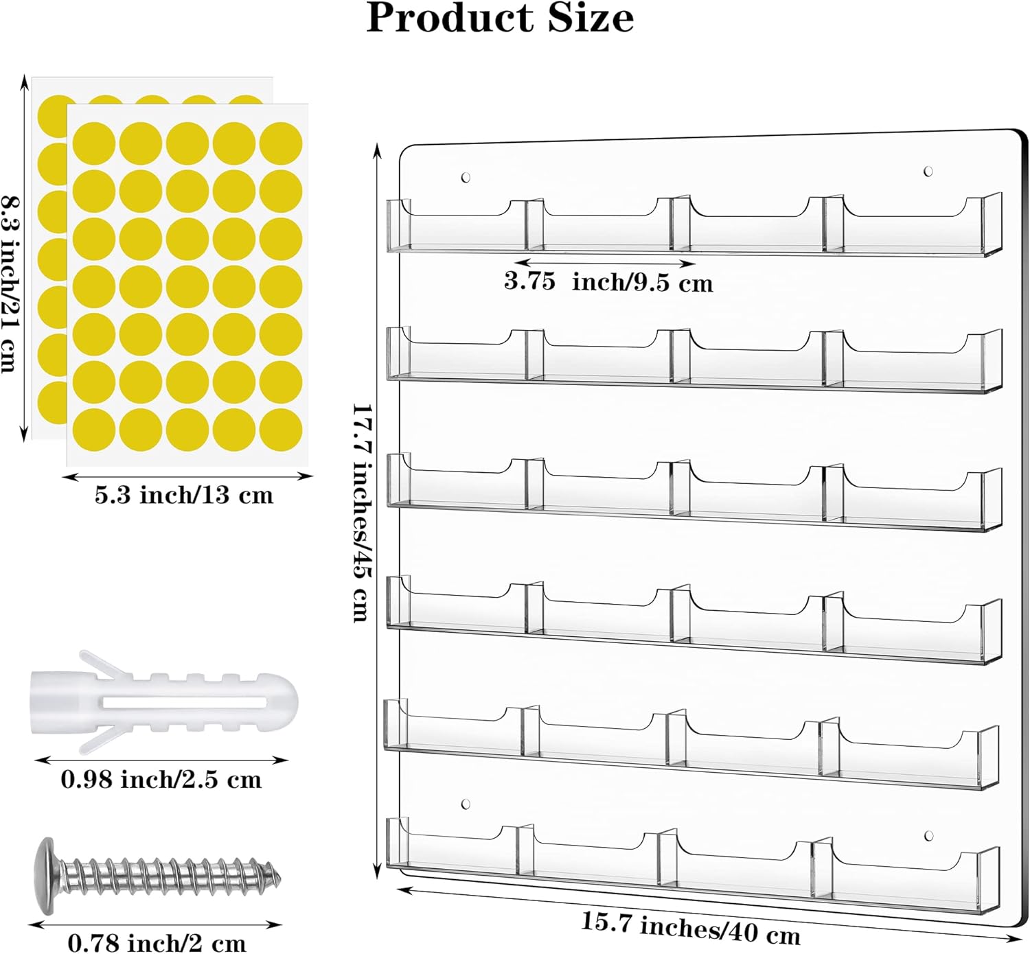 - Multi-function: the wall mount clear sticker display comes with 24 pieces of pockets, the card holder measures about 17.7 x 15.7 inches/45 x 40 cm, the size of each pocket is about 3.75 x 0.75 x 0.75 inch, large in size, can be used to store a large number of items, such as stationery, office supplies, time cards, business cards, keys, and any other small items