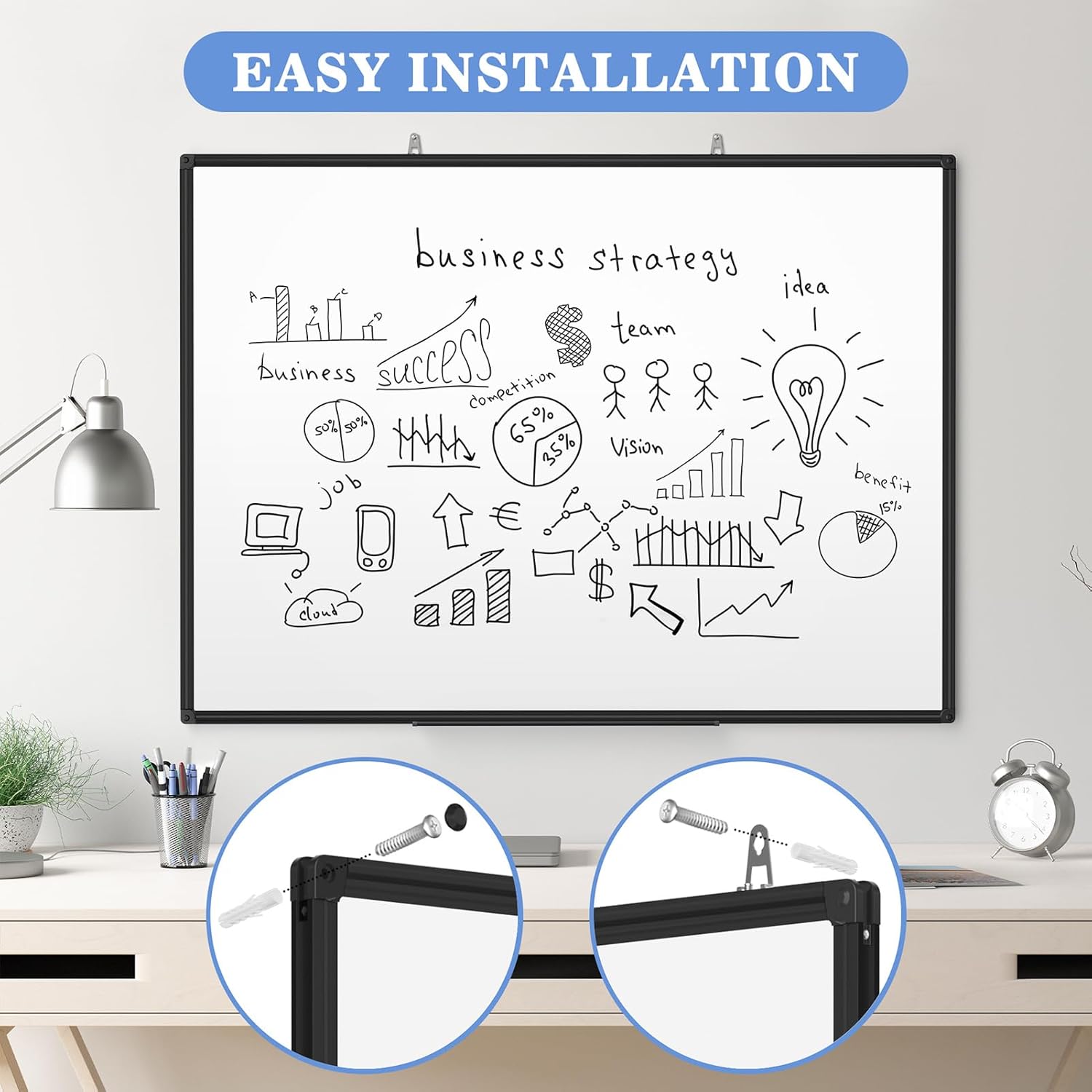 Magnetic Dry Erase Whiteboard 36 x 24 Inch - Small White Board, Black Aluminum Frame Wall-Mounted, Magnetic Eraser, 2 Pen, Detachable Marker Tray, 6 Magnets for Office, School