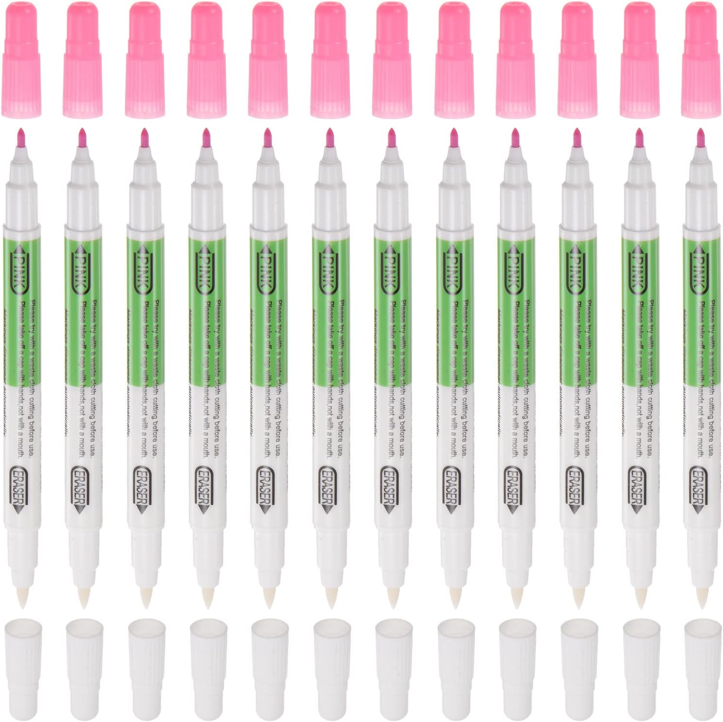 HARFINGTON 12pcs Disappearing Ink Fabric Marker Pen with Eraser Erasable Ink Fabric Sewing Marking Pens Water Soluble Ink Tailor's Pen Marking Tracing Tools for Quilting, Pink White