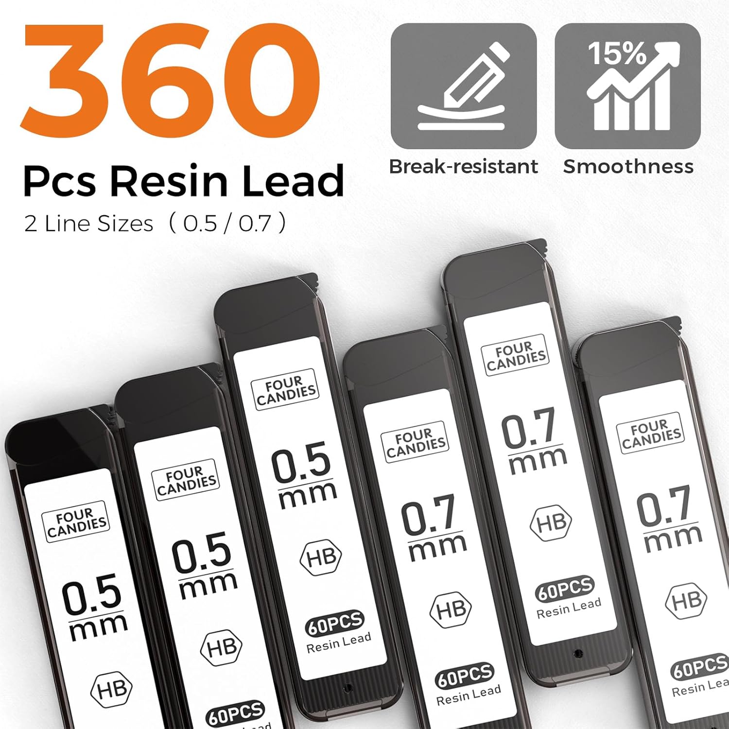 - 【360PCS Resin Lead】6 tubes of 60pcs super capacity leads. A more durable resin lead which doesn’t require sharpening and is not easy to break at the tip or break in the shaft, provides ultra-smooth writing and clear dark lines.