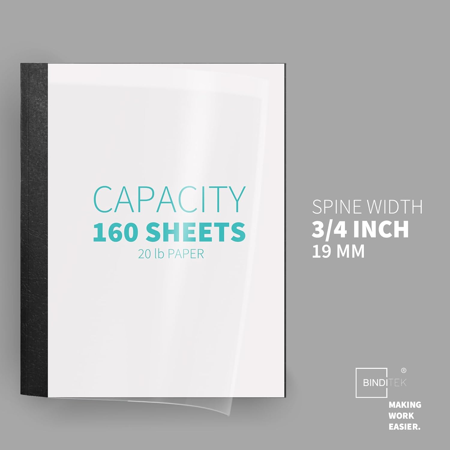 Binditek 10 Pack Thermal Binding Presentation Covers, 3/4 Inch Spine, Holds 160 Sheets, Ultra Clear Front Cover, Black Paper Back Cover, Letter Size, for Students and Coworkers