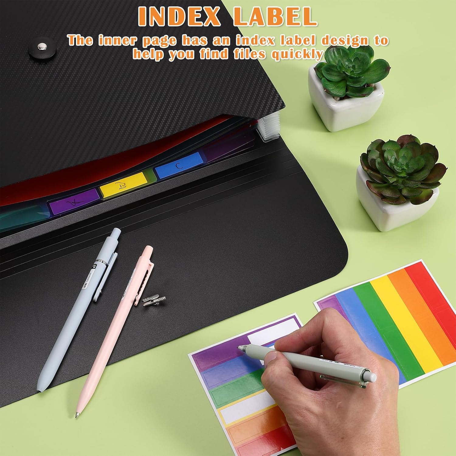 - Colored Label Design: Accordion file organizer with colorful interior pages and complimentary labels helps you find and locate files faster and more accurately. The accordian file folders are great for organizing and sorting files