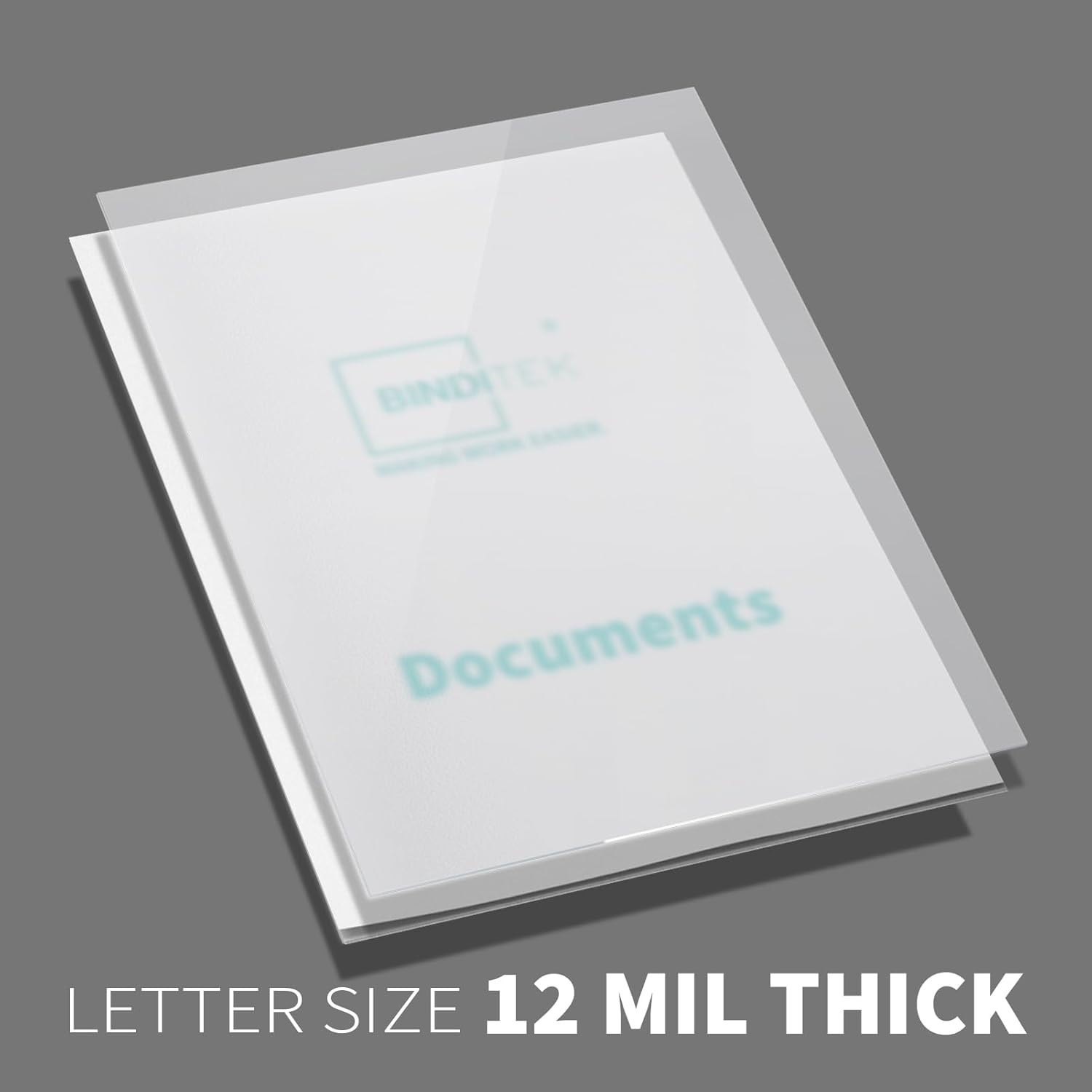 Binditek 50 Pack 12 Mil Binding Covers, Frosted Polycovers, Semi-Transparent, 8-1/2 x 11 Inches, Lightly Textured Sand Finish, Square Corners, Unpunched